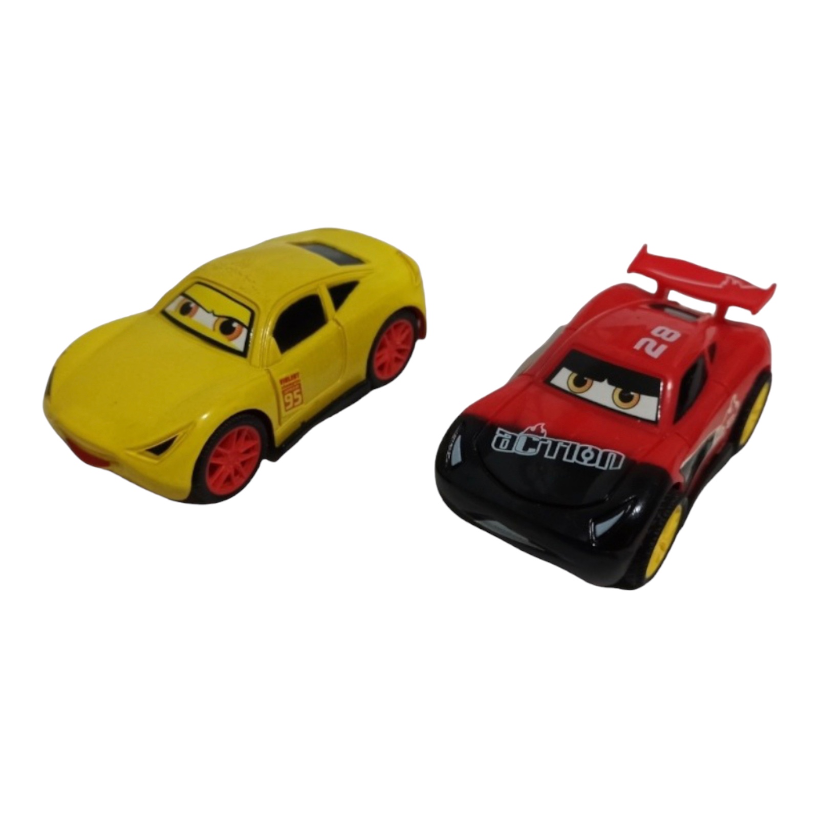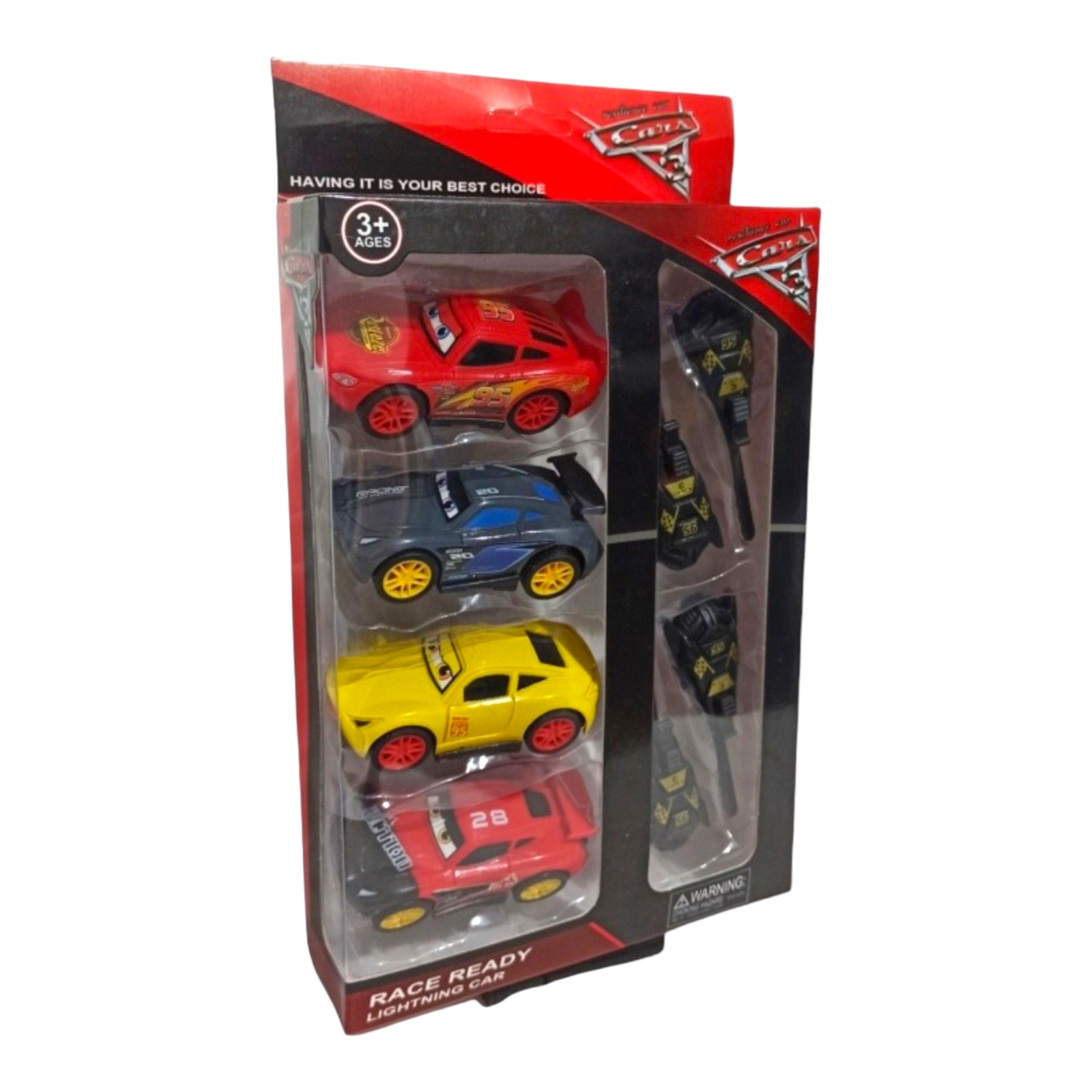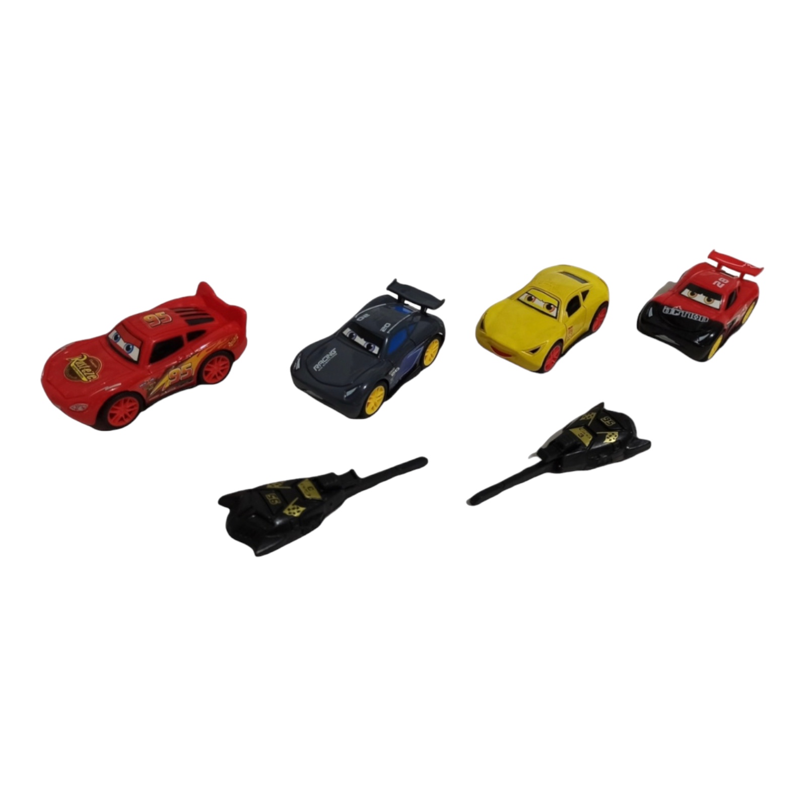 Lindo Set × 4 de carritos de impulso de la película Cars con llave de disparo a presión.