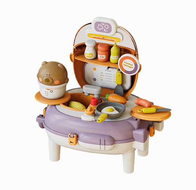 Mochila de cocina de oso, dos en uno para niños, juguete para jugar a las casitas, mini utensilios de cocina portátiles,