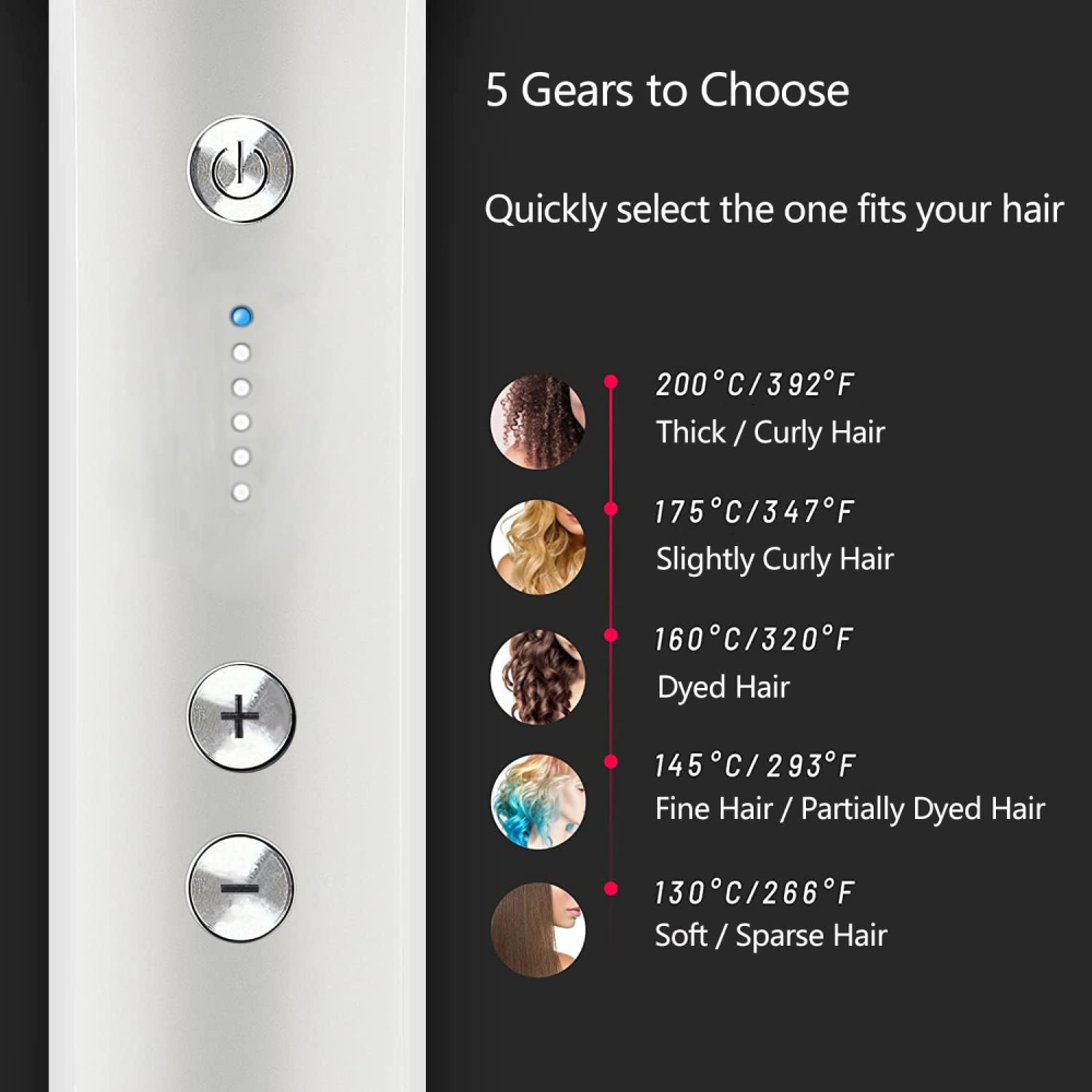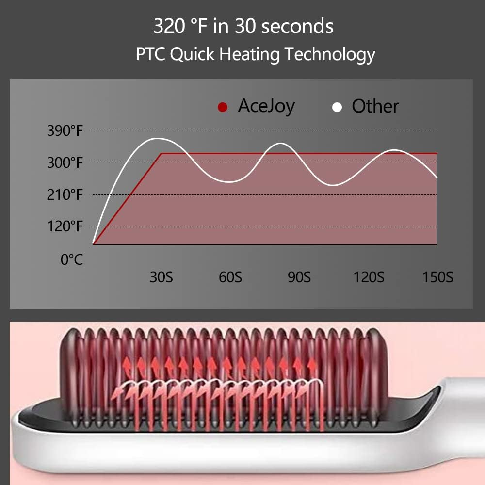 5 ajustes de calor para diferentes tipos de cabello: con 5 ajustes de temperatura, el cepillo alisador puede satisfacer varias necesidades de peinado para diferentes tipos de cabello. Además, se puede calentar rápidamente en 10 segundos, no más tiempo perder en tu prisa matutina.