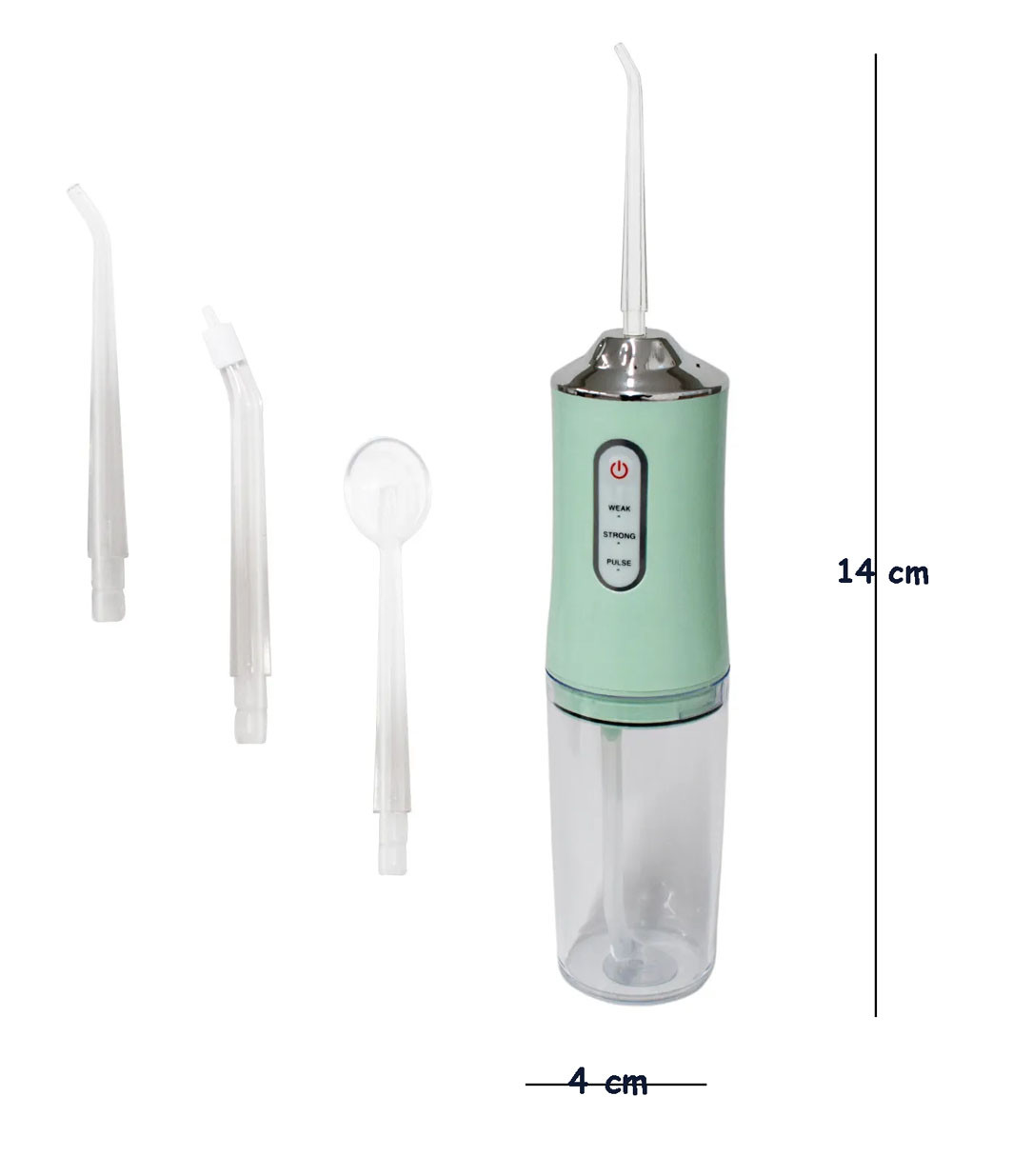Depósito de agua desmontable de 7.4 fl oz y 4 boquillas multifuncionales. Tanque de agua desmontable de gran capacidad de 12.2 fl oz, no hay necesidad de rellenar constantemente el agua. El diseño de boquilla giratoria de 360° te permite limpiar fácilmente las zonas difíciles de alcanzar y evita los residuos y la placa dental.