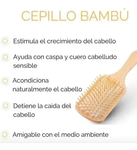 Cepillo plano de Madera cerdas en Bambu. Cabello desenredado y sin tirones.