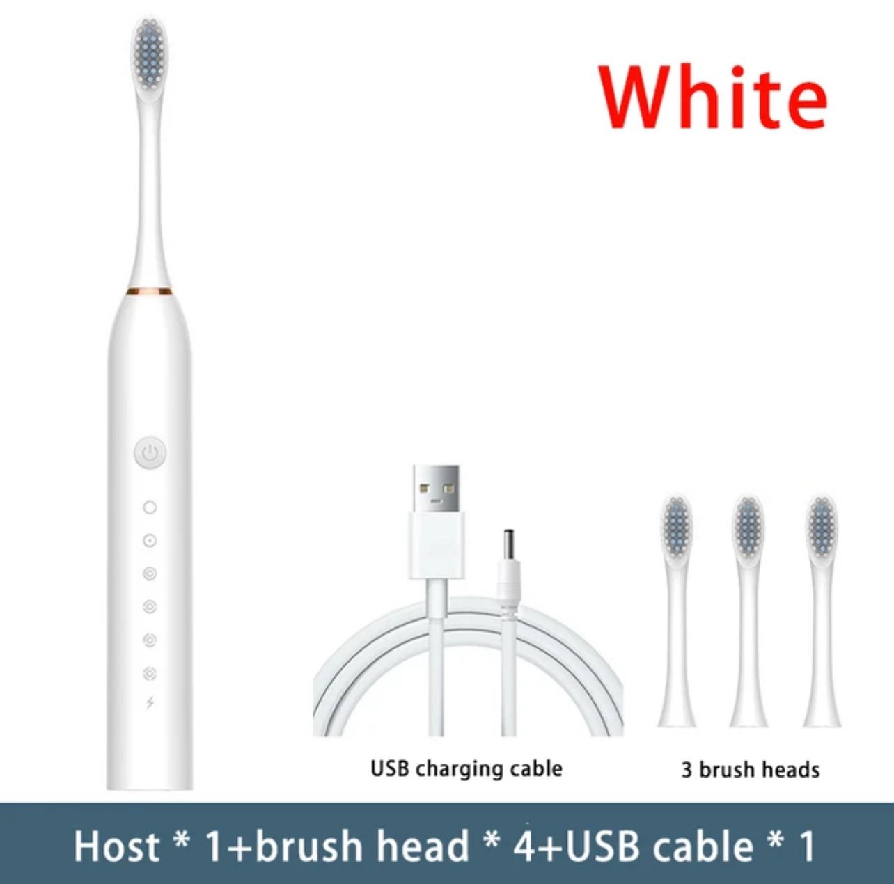 Cepillo de dientes eléctrico sónico para adultos, IPX7 resistente al agua, carga USB, pelo suave, 6 modos, 4 cabezales de repuesto