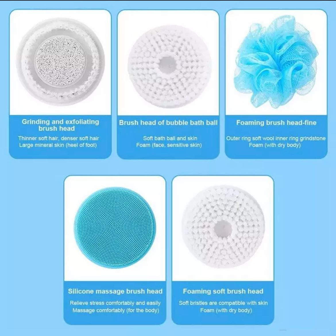 4. Engranajes dobles, con 5 cabezales de cepillo, para satisfacer las necesidades de limpieza y masaje de diferentes partes