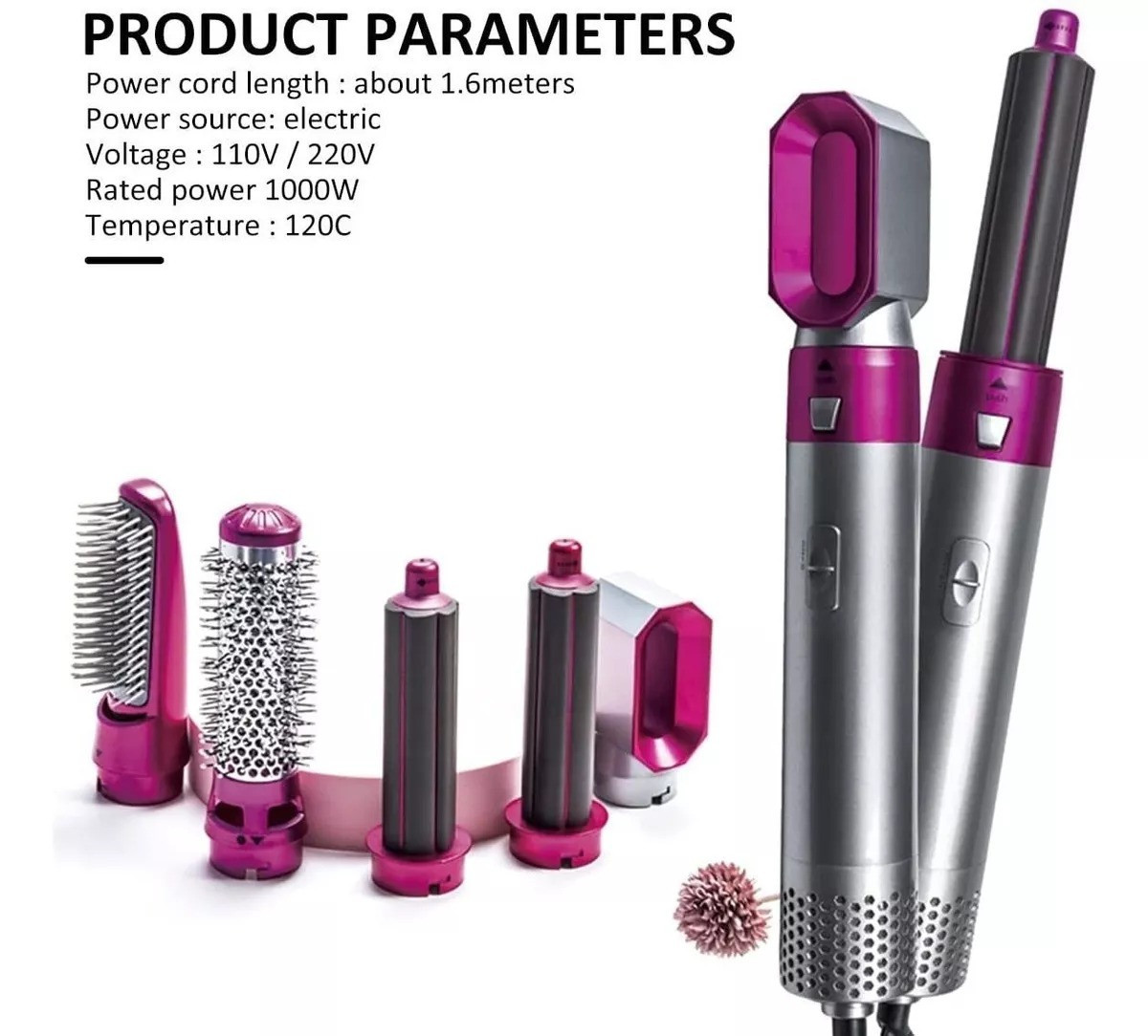 Secador de pelo 5 en 1 Kit secador de pelo eléctrico Cepillo de aire caliente Styler Volumizer plancha de pelo rizador peine secador de cabello+regalo