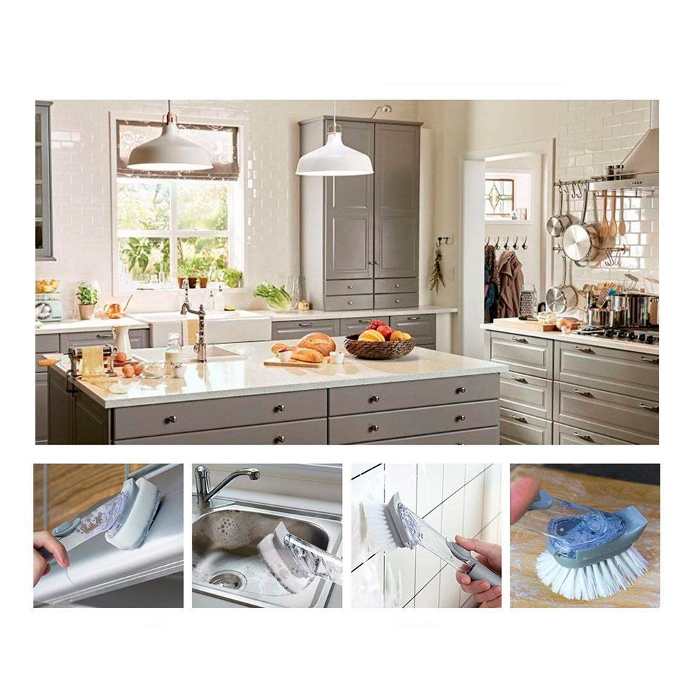 - Cepillo dispensador de líquidos de mano con esponjas de repuesto.