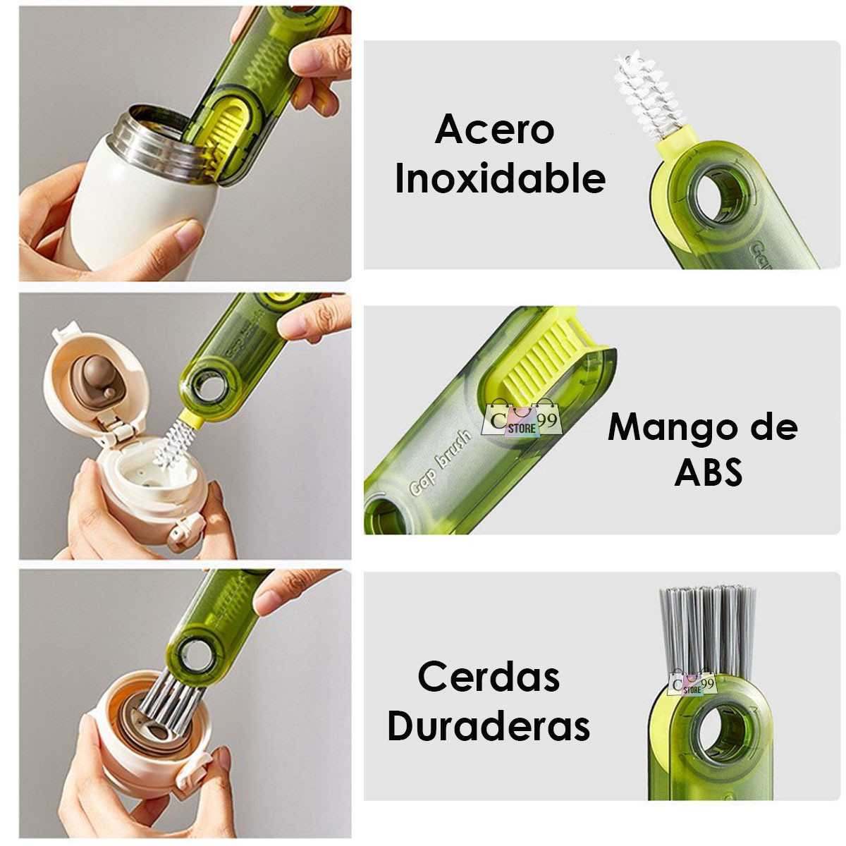 Cepillo de limpieza 3 en 1: nuestro cepillo de limpieza se compone de tres partes: cepillo en forma de U: combina con la boca de la taza, limpia las manchas persistentes alrededor de la boca de la taza. Espacio de ajuste: Limpie la ranura estrecha de la pared interior de la tapa. Cepillo de ángulo de pelo duro: limpia la suciedad en la esquina del contenedor. Diseño íntimo-pequeño y exquisito. Al mismo tiempo, se puede convertir a 180 °, pequeño y rápido, conveniente para el reemplazo, con agujeros para colgar. Se puede colgar cuando no está en uso, lo cual es conveniente para el almacenamiento. Materiales y calidad: hechos de ABS + PP + silicona de alta calidad. Es sólido y duradero. Puede soportar temperaturas de hasta 80 °C. Es fuerte y resistente al desgaste. Se puede lavar y es seguro, y no es fácil de romper. Fácil de limpiar: el cepillo de limpieza de biberones es muy suave en cualquier superficie y no dañará la limpieza familiar. Se especializa en la limpieza de ranuras profundas, huecos y esquinas. El cepillo es fuerte y fácil de limpiar. Simplemente enjuague con agua y seque rápidamente. Amplia aplicación: adecuada para todas las tazas y botellas, como tazas, vidrio, botellas, tazas deportivas, copas de vino, tazas de té, tazas, tapas de tazas aislantes, etc. También se puede utilizar para tetera, tapa de tetera, plato, chupete, etc.