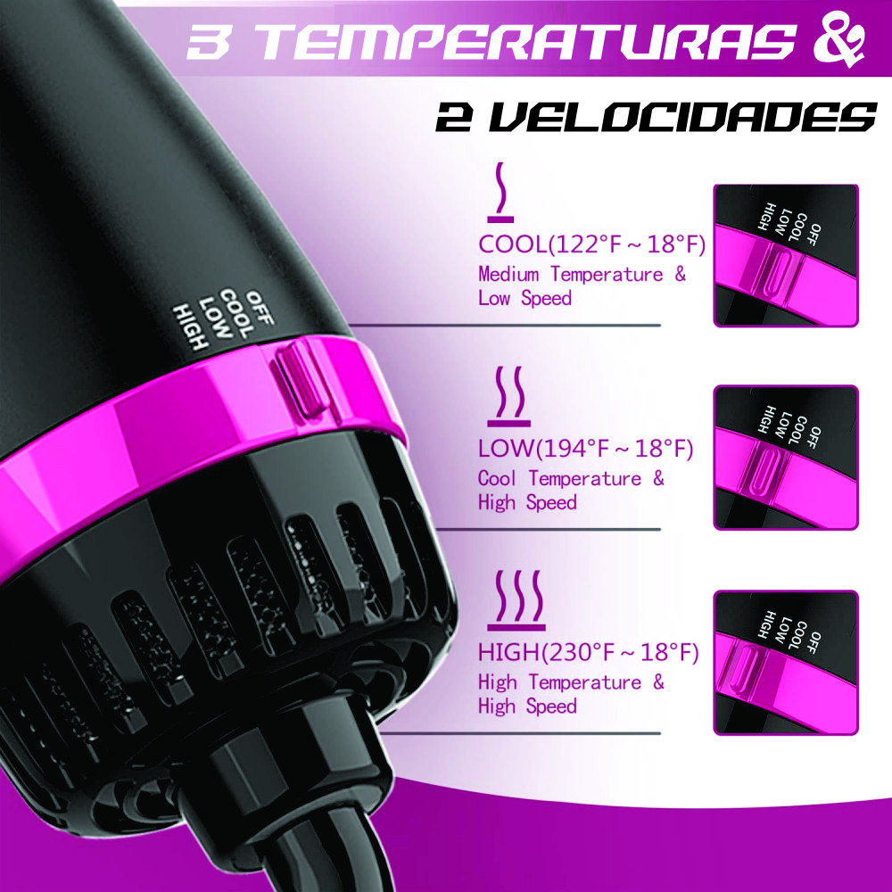 Múltiple ajuste de calor y secado completo, flexibilidad del diseño para adaptarse a todos los tipos de cabello.