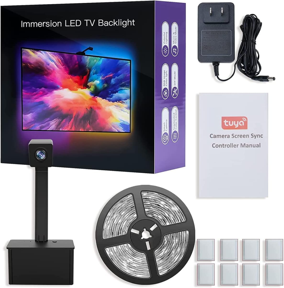 Tira Luces Led para TV, Wi-Fi TV Backlight con Camera, Funciona con Alexa y Google Assistant, App TUYA, Músic Modo, Diseñada para Televisores de 55-65 pulgadas, Trabaja con Android y iOS.