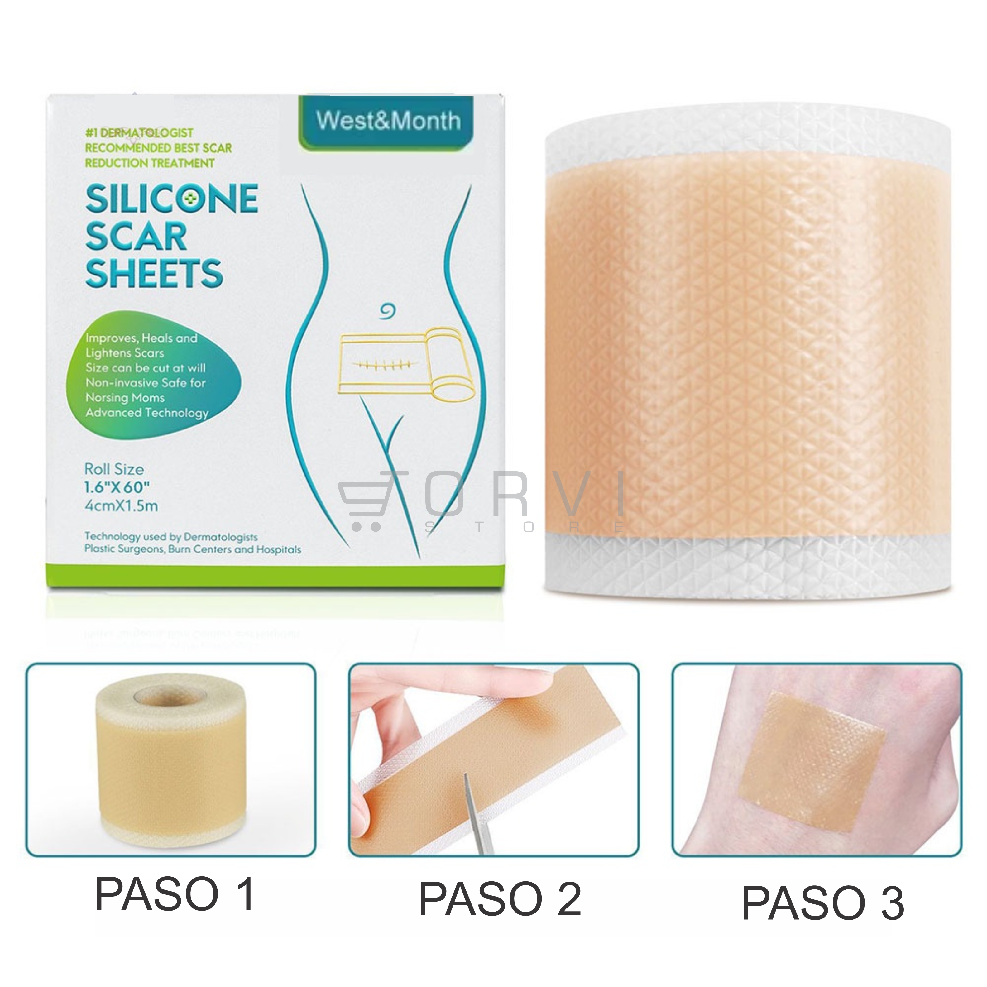 Las láminas de cicatriz de silicona WEST&MONTH se prueban clínicamente y se ha comprobado que mejoran el color, el tamaño, la textura y la apariencia general de las cicatrices de cirugía, lesiones, cesáreas, procedimientos cosméticos, quemaduras o acné.