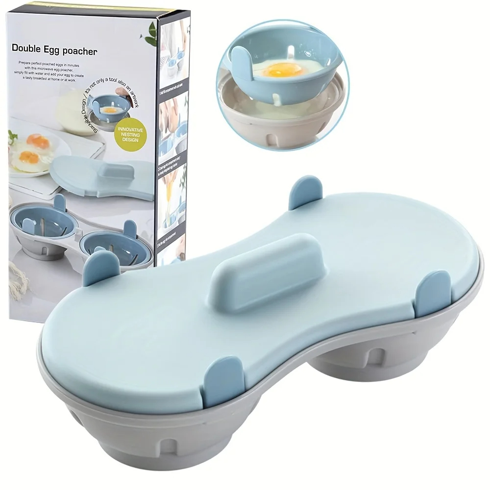 Material de polipropileno de grado alimentario libre de BPA – Máquina para hacer huevos dobles para microondas, diseño de alta capacidad, saludable, seguro y cómodo, hacer huevos escalfados perfectos, preparar el desayuno en cuestión de minutos. Apto para lavavajillas, fácil de limpiar. Simplemente enjuaga con agua después de escalfar huevos. Resistente a altas temperaturas, seguridad.