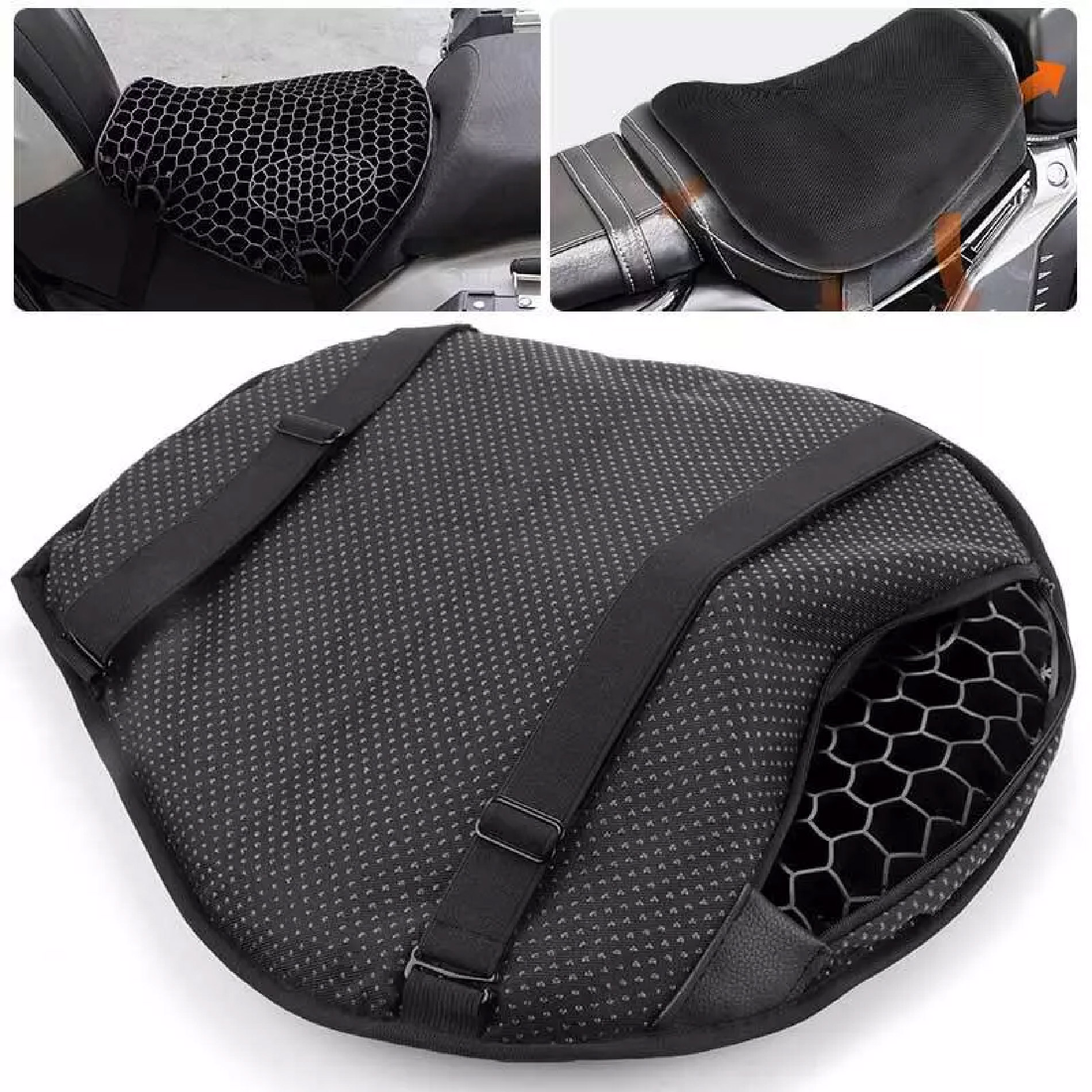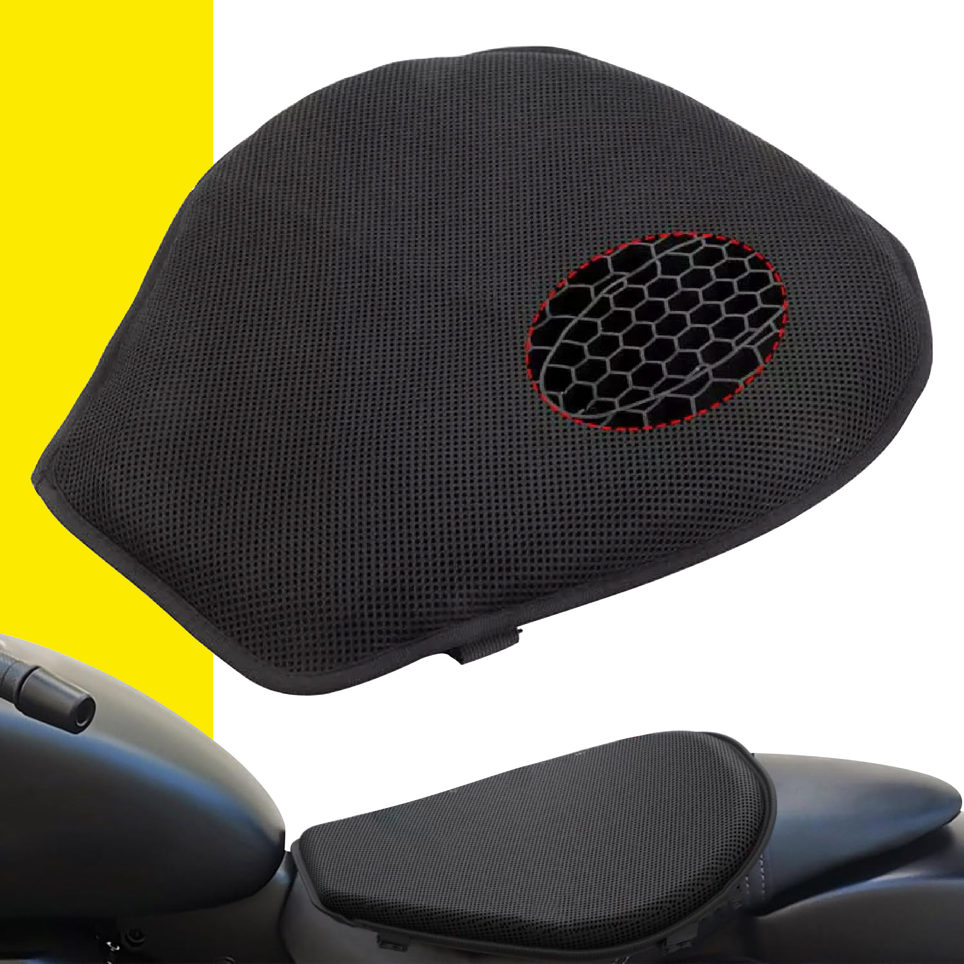 Diseño de panal 3D: Esta almohadilla de asiento de motocicleta tiene un diseño de panal 3D, está diseñada para que el aire fresco pueda circular a través de cada sección para una comodidad y frescura instantáneas.
