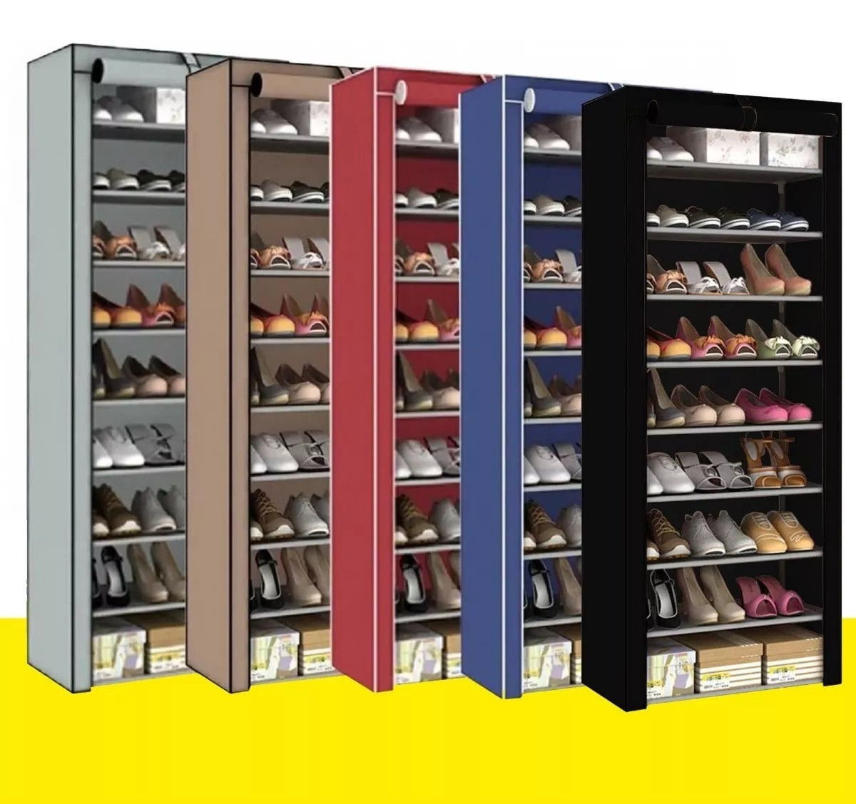 Práctica zapatera con forro que protege los zapatos del polvo y la humedad. Con 9 niveles para 27 pares de zapatos.