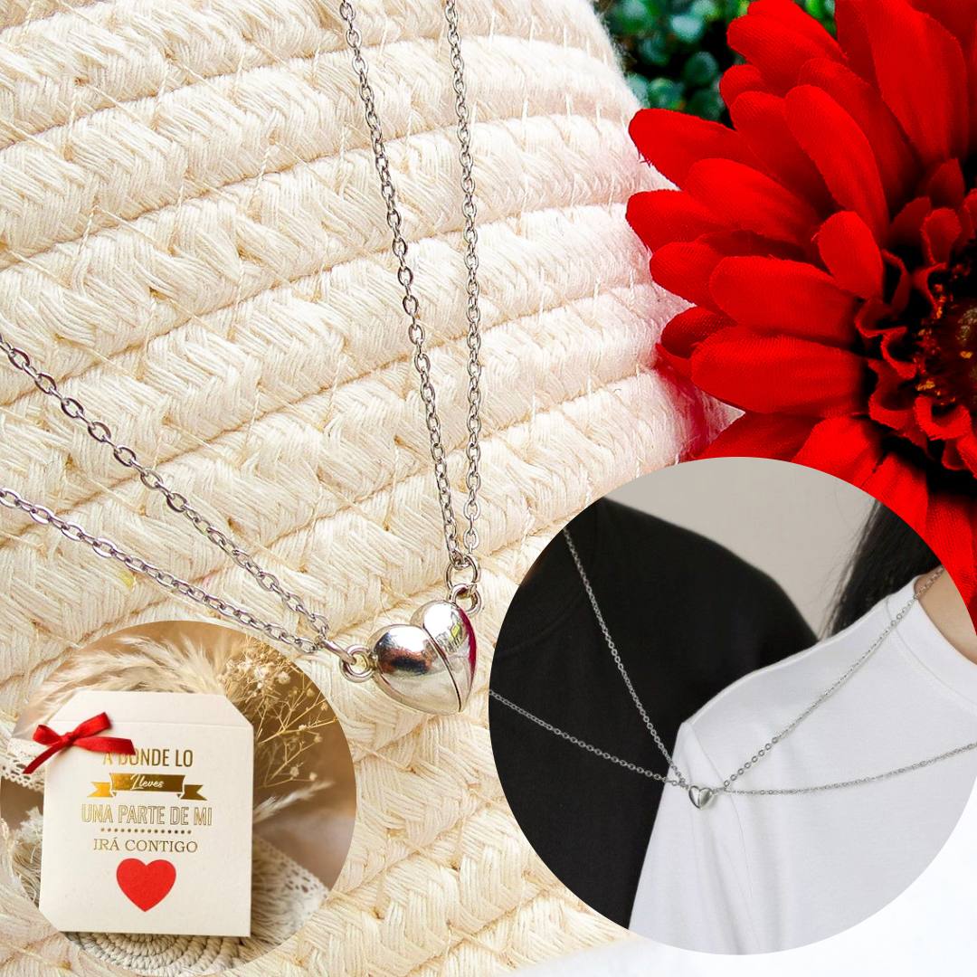 Cadenas fabricadas en acero con corazón imán también en acero, cada accesorio trae una cadena extensión para colocarla más larga el largo de cada Cadena sin extensión es de 45cm.