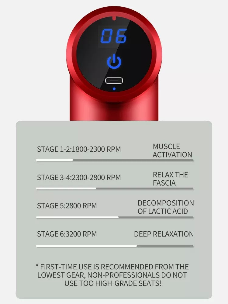 - Tamaño de la pistola fascia /Peso: 13.3 * 13* 5 cm/0.6 kg