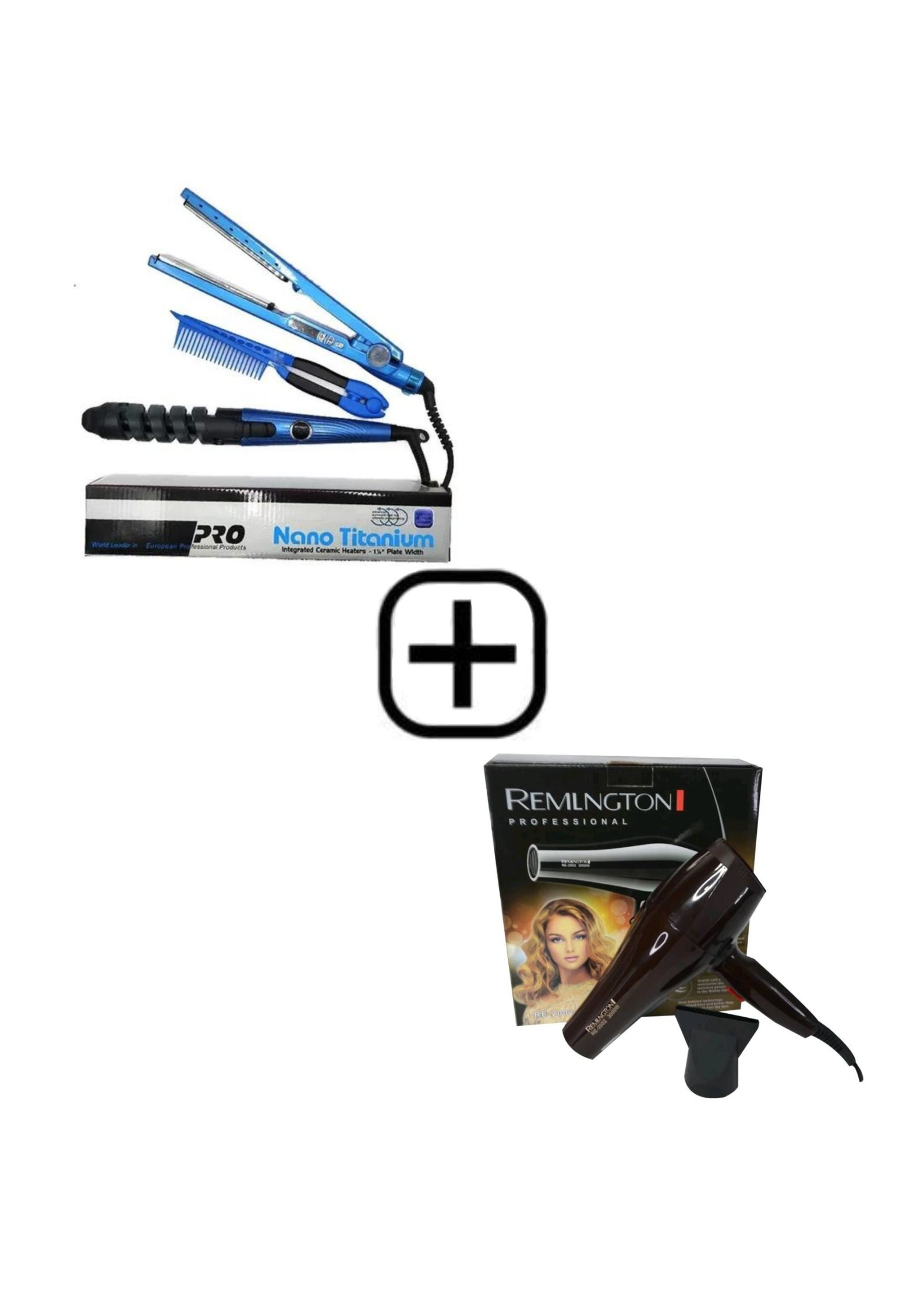 Paquete incluido: Plancha (1) / Secador 3000 W (1) / Rizador (1) / Peine (1) / Boquilla (1)