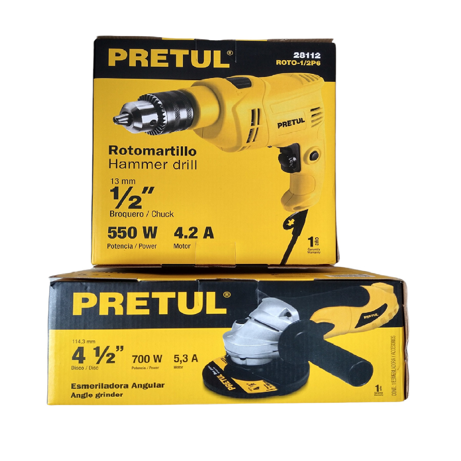 24035-28112 Combo Taladro Rotomartillo 1/2″ 550W y Pulidora angular 4-1/2″ 700W Pretul