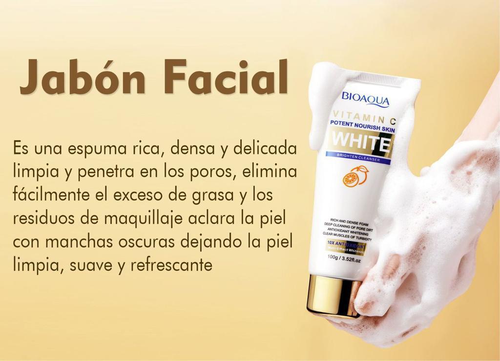 Con Vitamina C y Colágeno para blanquear e iluminar.