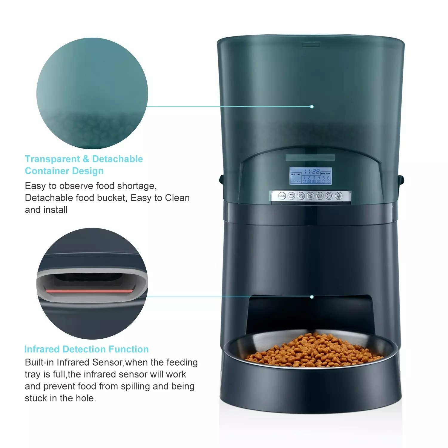 A través de horarios de comidas y porciones fáciles de programar, el comedero automático para mascotas ayuda a cuidar a su mascota alimentándola en un horario, para que pueda estar tranquilo sin importar dónde se encuentre. Mientras tanto, puede mantener a su amigo peludo conectado a través de la grabación de voz como llamadas de alimentación cuando esté fuera.
