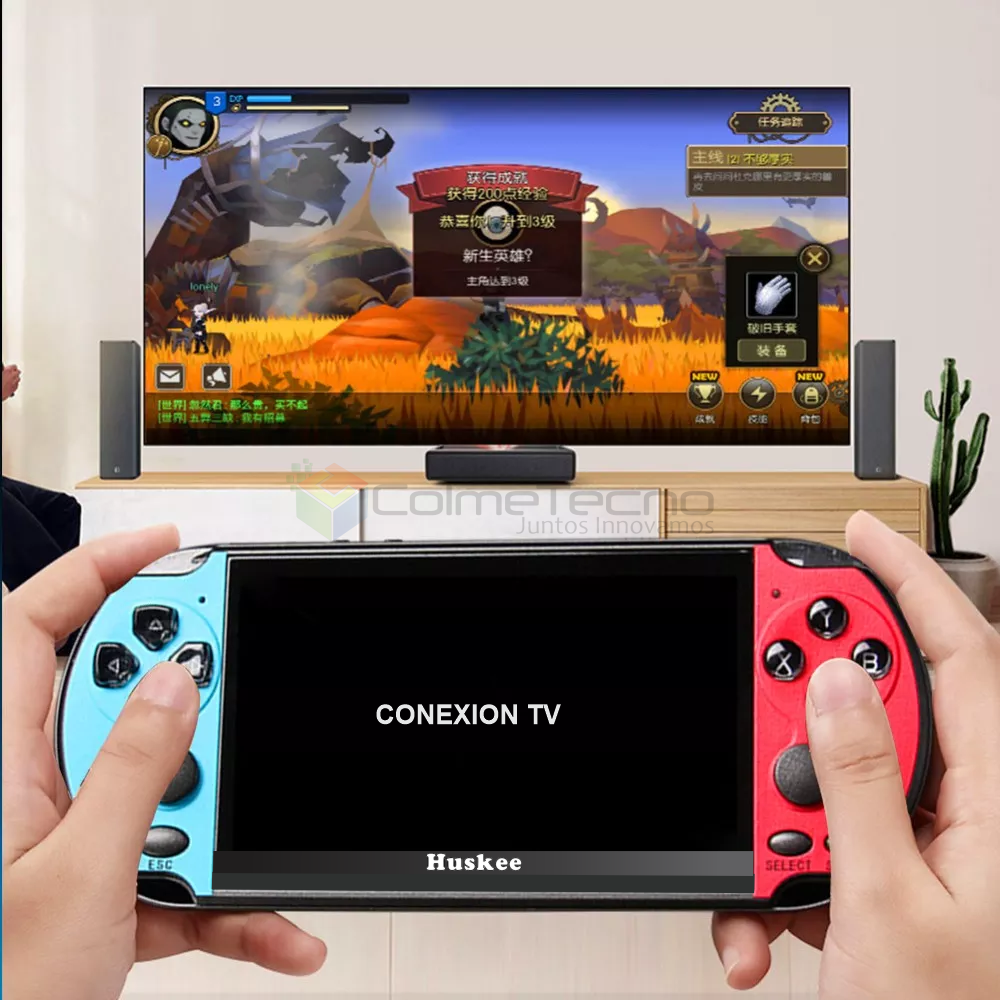 Espectacular consola de video juegos Retro, Recargable con pantalla de 5.1″ Multifuncional Edición Mejorada MP5 X7 PLUS•3000 juegos gratis•Pantalla a color TFF para el cuidado de los ojos de 5.1 pulgadas•Admite más de 20 idiomas•Admite CPS GBA GBC GB NES FC SFC MD (SMD) (juego de arcade).•Admite juegos arcade