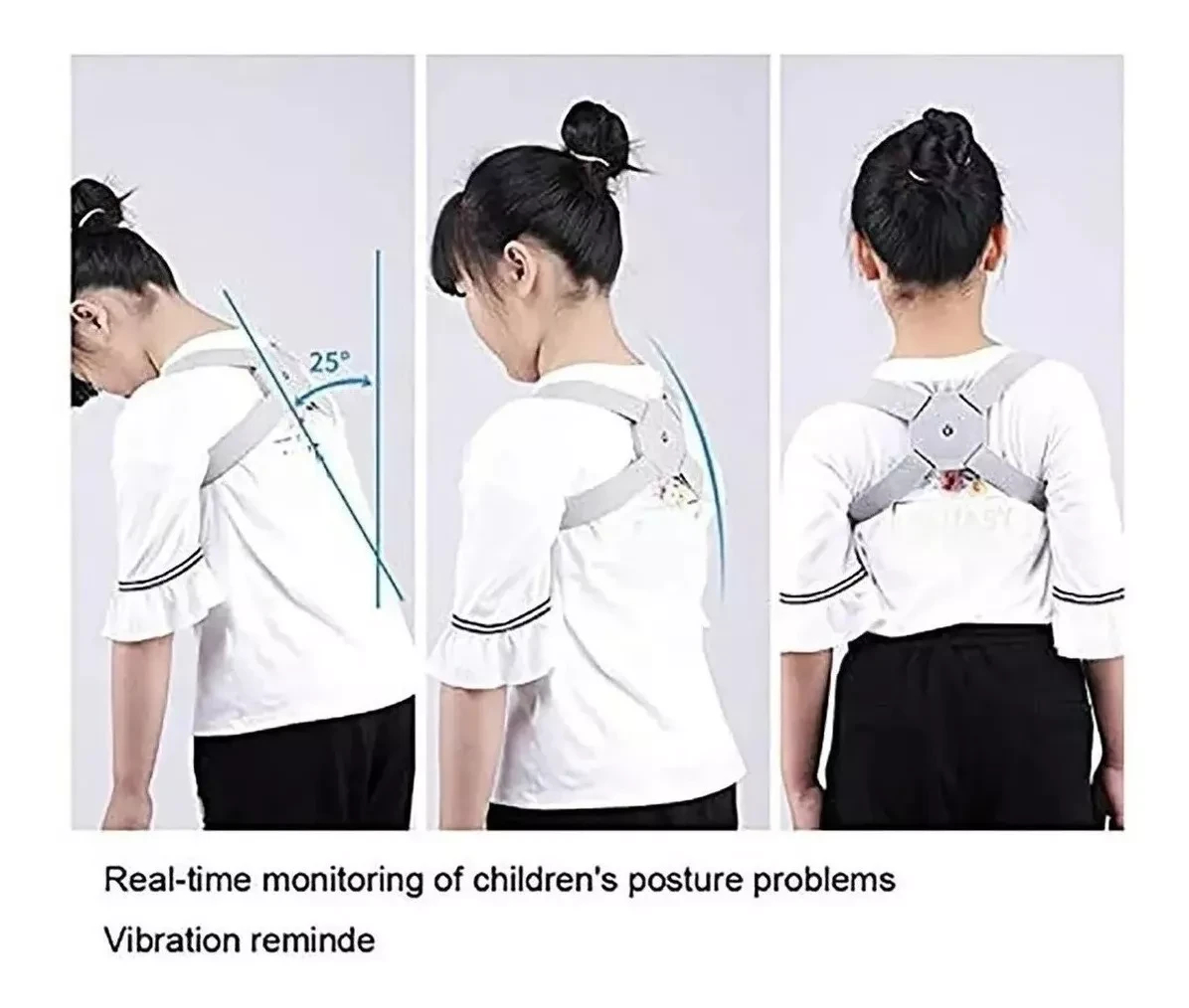 • Seguimiento en tiempo real de los problemas de postura de los niños, cuando la joroba se dobla más de 25°, el corrector vibrará para recordar.