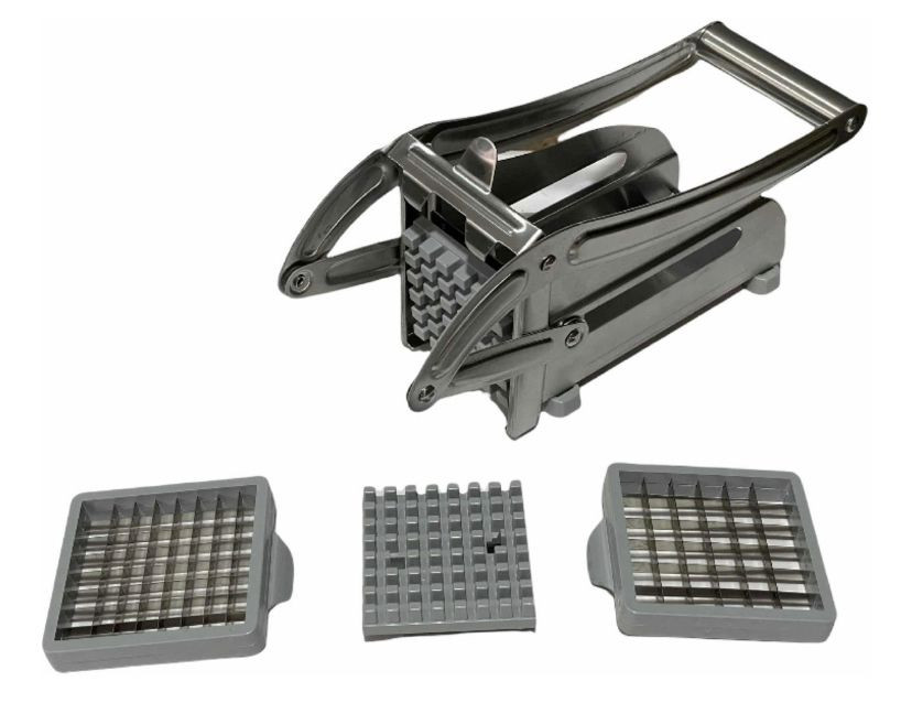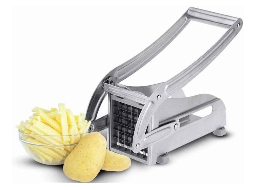 Con la Cortadora de Papas Fritas de acero inoxidable podrás disfrutar de tus papas mucho más rápido. Sólo debes colocar la papa en la máquina y empujar firmemente el mango. Es apto para lavavajillas y viene con cuchillas incorporadas de 12mm y 9mm.