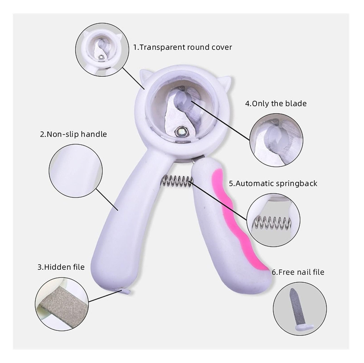 El cortaúñas está diseñado con una cubierta protectora, que puede evitar eficazmente las salpicaduras de uñas y le brinda una buena experiencia.