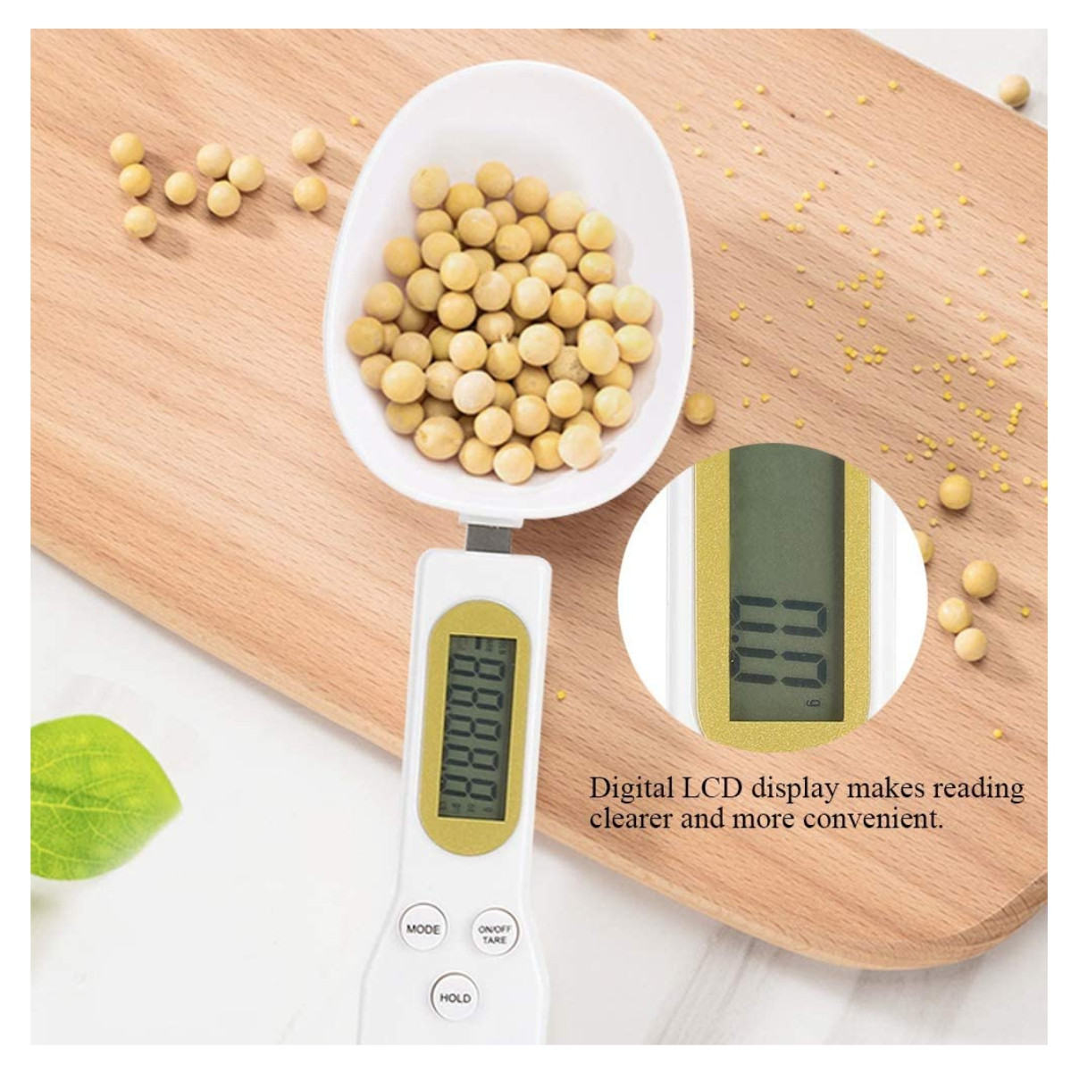 Esta báscula de cuchara digital es útil en la cocina cuando necesitas obtener una cantidad precisa de ingredientes como harina, azúcar, sal, etc