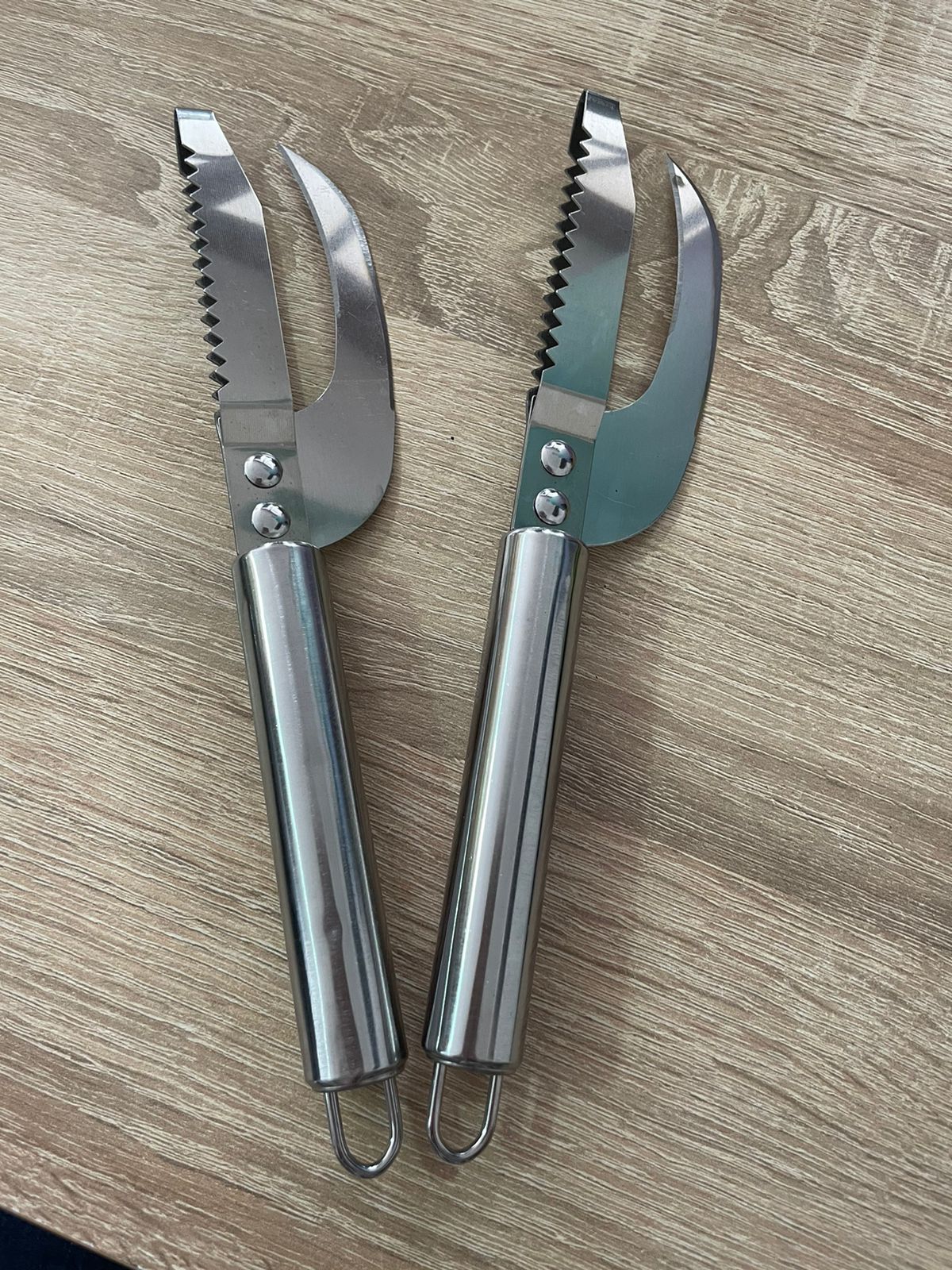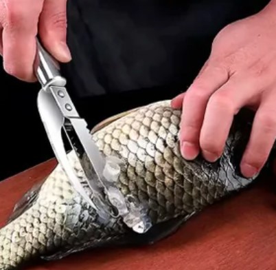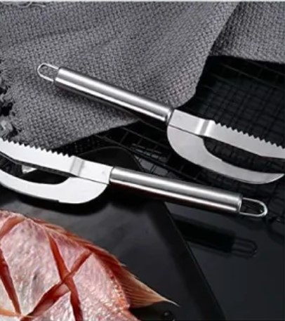 Se trata de un cuchillo de pescado 3 en 1. Raspado de básculas, corte de carne, evisceración, todas estas complicadas tareas lo dejan a este delicado cuchillo ahora