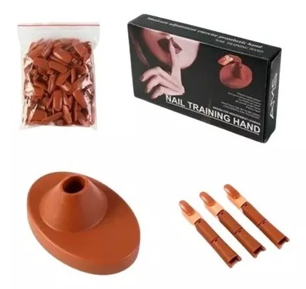 1 juego de dedos para practicar (con 3 dedos falsos, 1 base y 100 piezas de puntas de uñas)