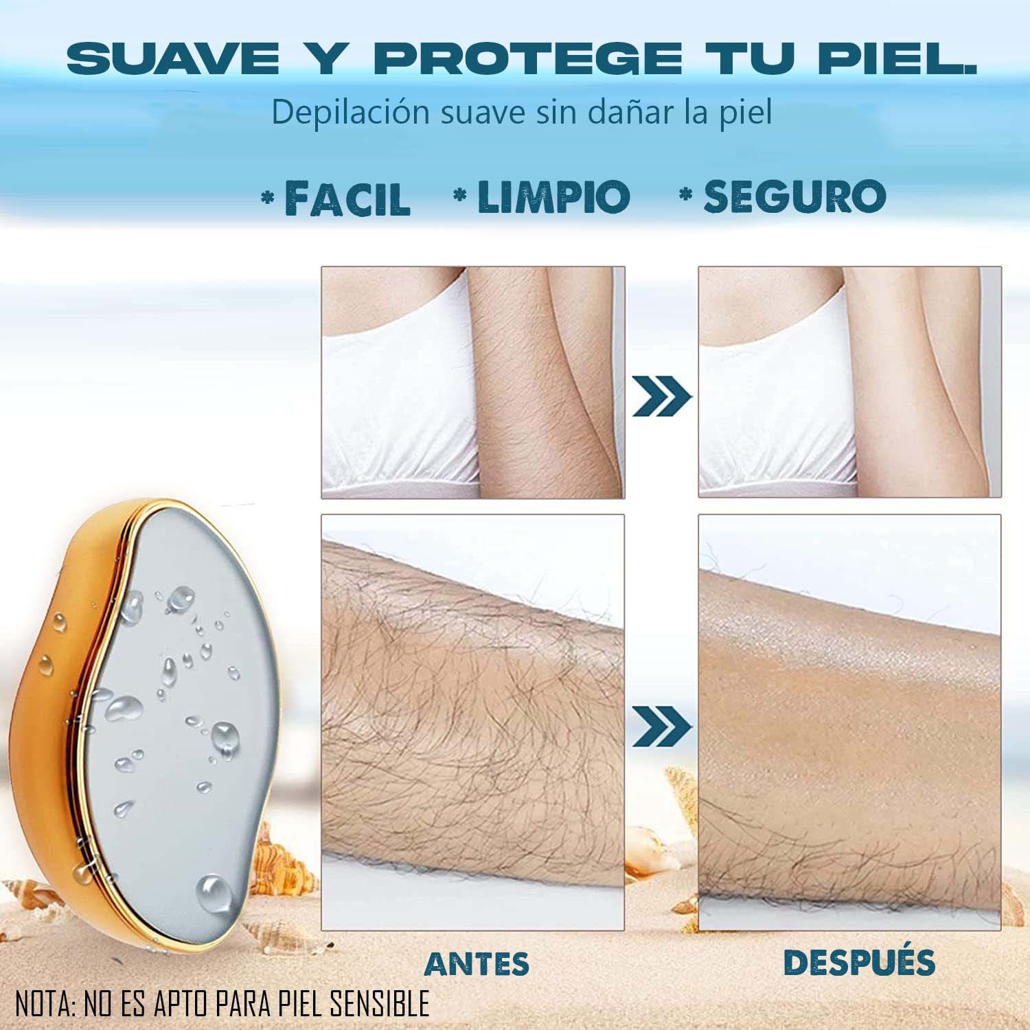 - Removedor de pelo 2 en 1 de alta eficiencia sin dolor: frota el cristal para eliminar la piedra contra la piel con un movimiento circular con fuerza moderada y obtendrás un cuerpo sin pelo. Este proceso también ayuda a exfoliar y despertar la piel después de su uso para un acabado más radiante También se puede utilizar con amantes y amigos Simplemente lavar con agua después de su uso.