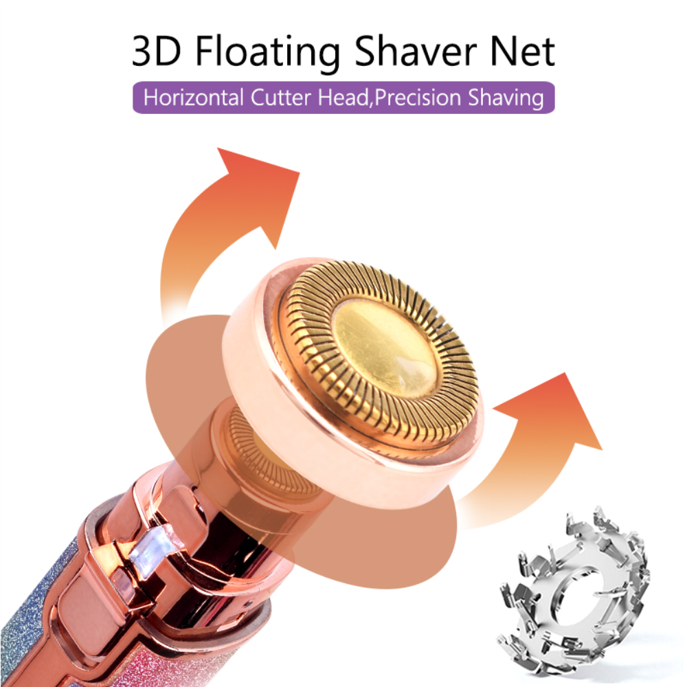 Afeitadora de cabeza plana: Equipada con una afeitadora de cabeza plana para afeitar grandes áreas de superficie, como las mejillas, el labio superior y la barbilla. afeitarse, te dejará una piel suave, así que no te preocupes cuando te pongas el bikini