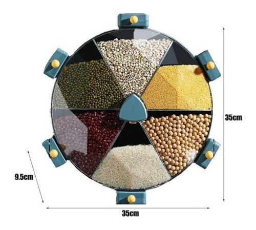 Diseño de gran capacidad, 1,42 l/rejilla, 6 rejillas en total 8,5 L. @@Especificaciones: @Artículo en miniaturaNombre del producto: Dispensador de cereales @Material: PP, PC, ABS, Metal @Tamaño: 35,5x30x13 cm @Capacidad:1 ,42l/rejilla (6 rejillas en total 8,5l) @@El paquete incluye: @1 x caja de almacenamiento de granos montada en la pared @1 taza medidora