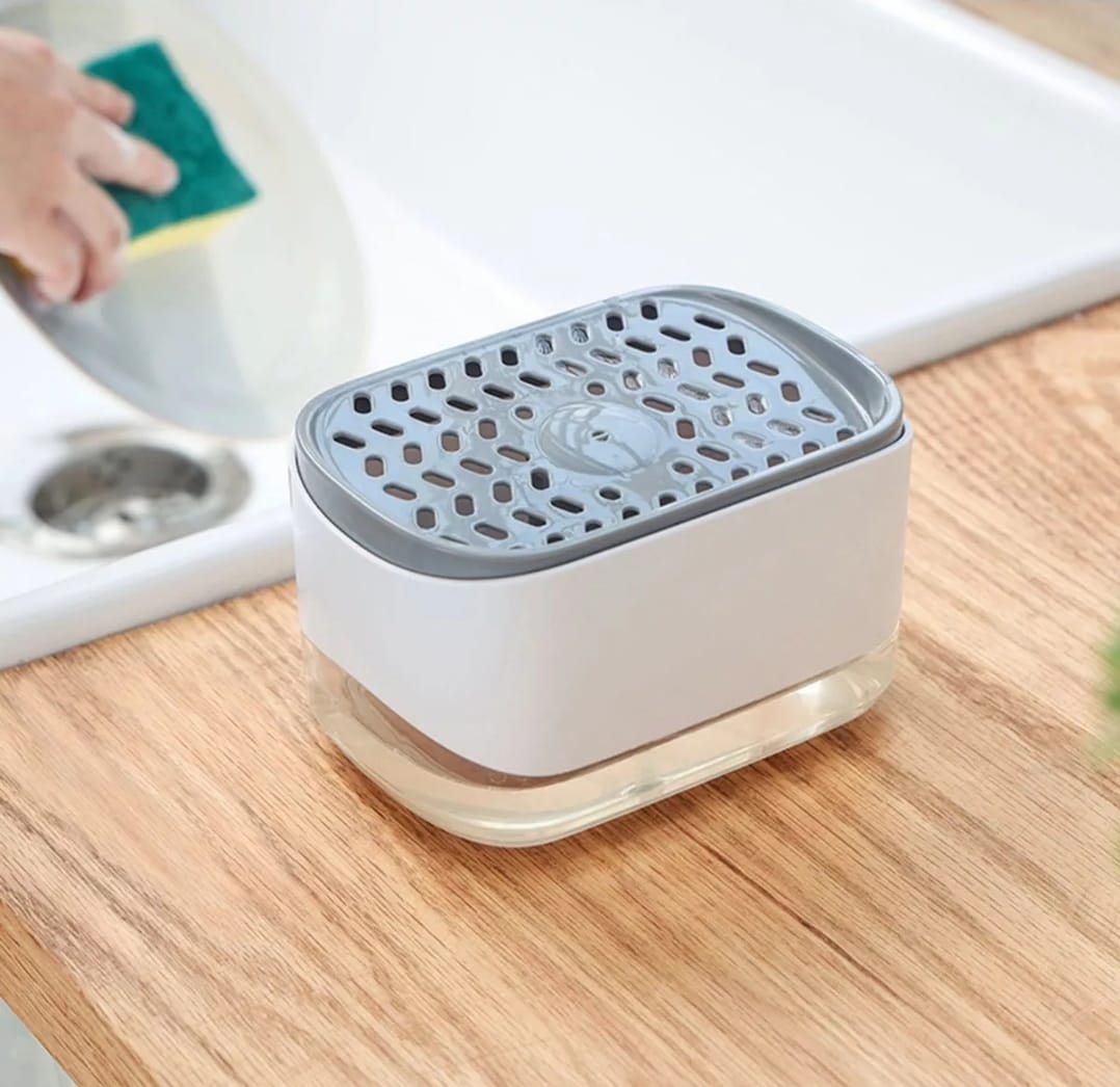Dispensador De Jabon Liquido Gel Cocina Con Jabonera 350ml Color Blanco/gris