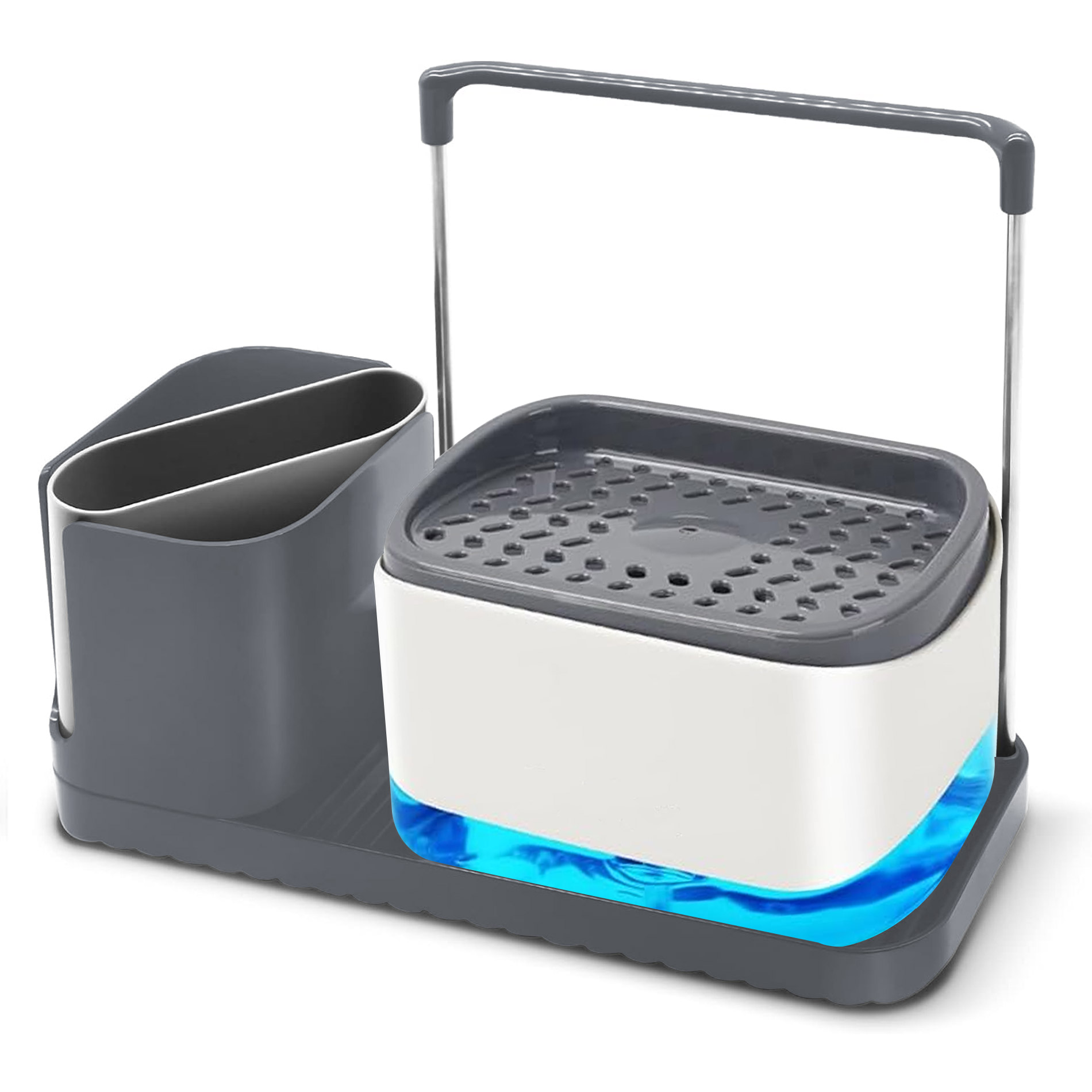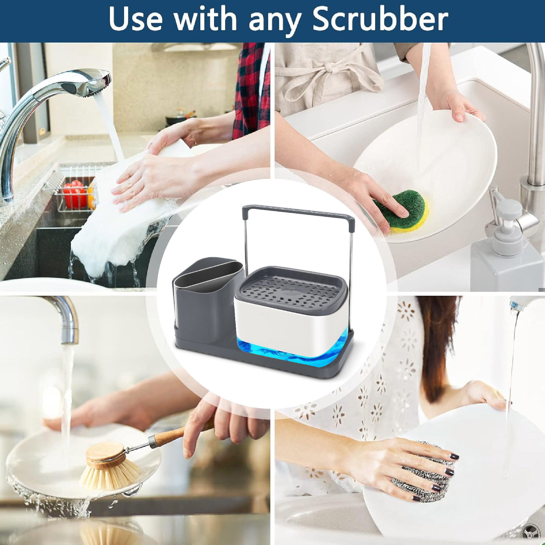 >> Pasa menos tiempo: nuestro soporte para esponja de jabón está diseñado para dispensar jabón sin esfuerzo con una sola mano y ha probado miles de pruebas de prensa. Nos aseguramos de que la bomba no se atasque mientras la usas, lo que te permite lavar los platos más rápido y fácilmente