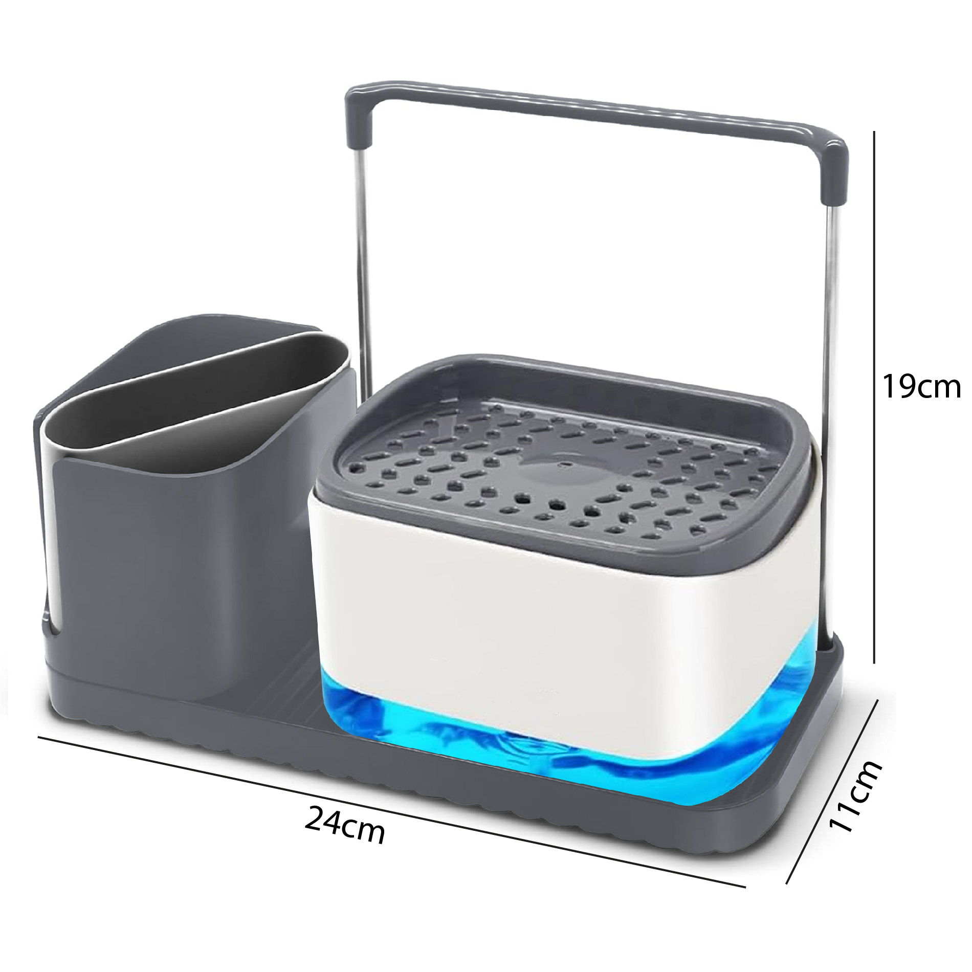 >> Mantén la limpieza: este dispensador de jabón de cocina está diseñado 4 en 1, que incluye un soporte para escobillas, un riel de trapo, un dispensador de jabón con soporte para esponja y un soporte de bandeja.