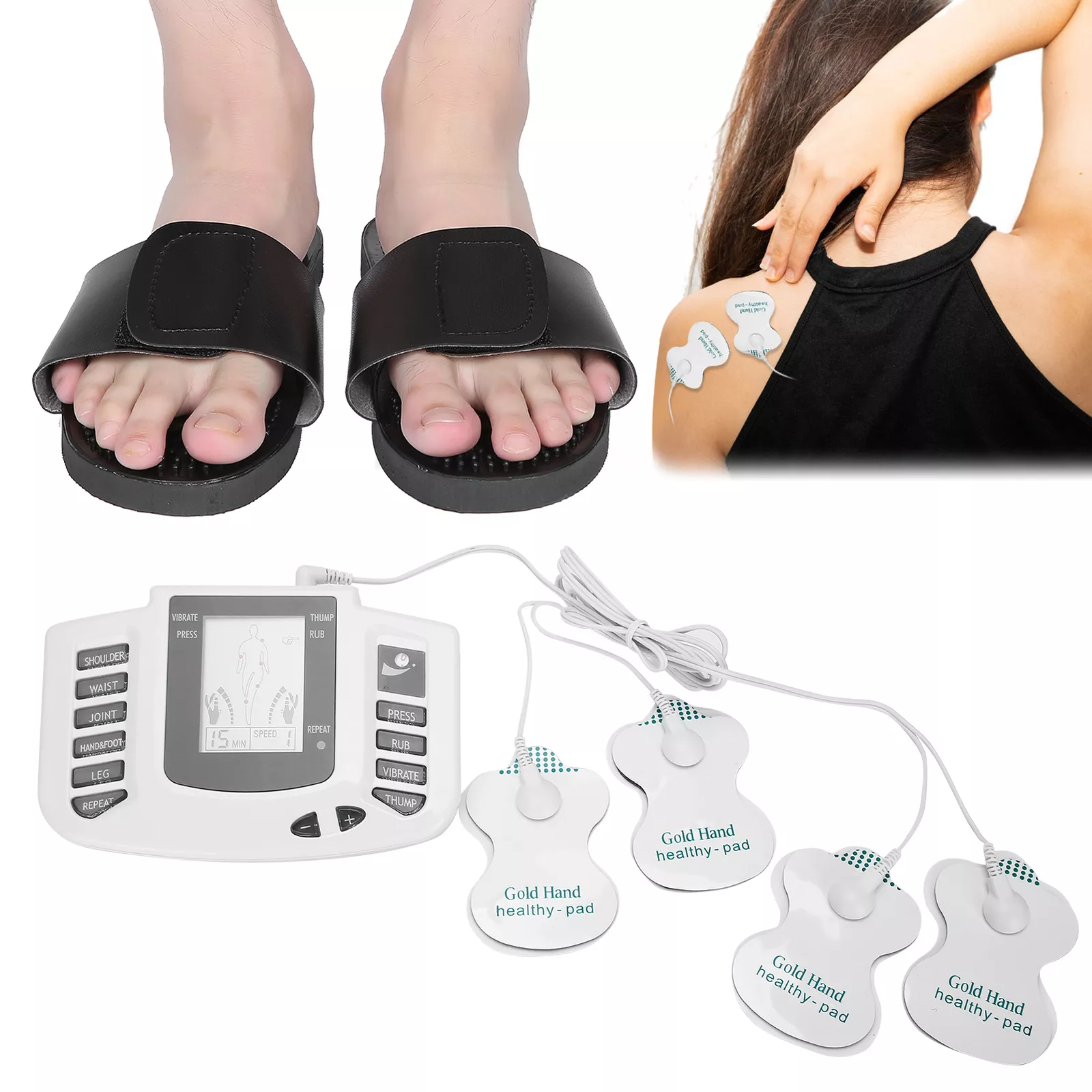MASAJEADOR DE PULSO ELECTRÓNICO – MONITOR GIMNASIA PASIVA + SANDALIAS