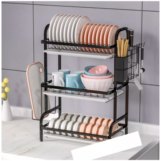 Estante 3 Niveles Escurridor De Cocina Para Platos En Hierro Forjado