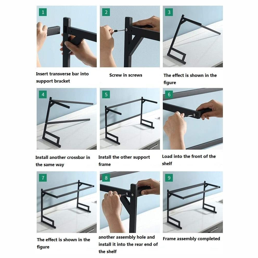 Material de alta calidad y estante resistente: El estante del fregadero está hecho de acero de alta calidad para evitar la oxidación y los arañazos. La estructura rectangular en la parte superior es más estable y podría cargar 60 libras sin inclinarse hacia adelante. La estructura en forma de U del estante tiene un soporte sólido y no se sacudirá durante un uso prolongado. Los pies hacen que el estante para platos sea más estable, separando el estante para platos y el agua para proteger la encimera sin dejar marcas.