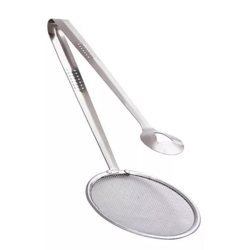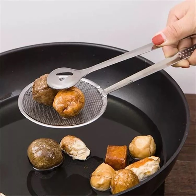 Pinza para alimentos fritos de acero inoxidable para con cuchara de filtro y colador de malla espumadera para ollas calientes.