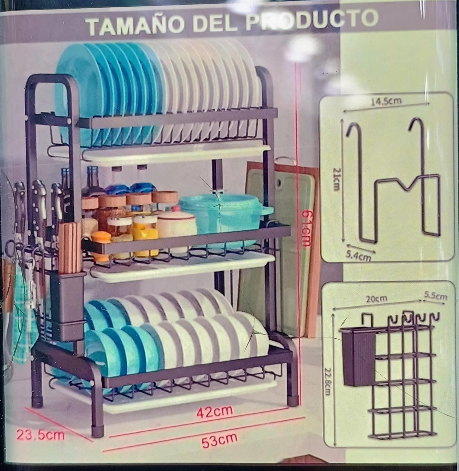 Estante 3 Niveles Escurridor De Cocina Para Platos En Hierro Forjado