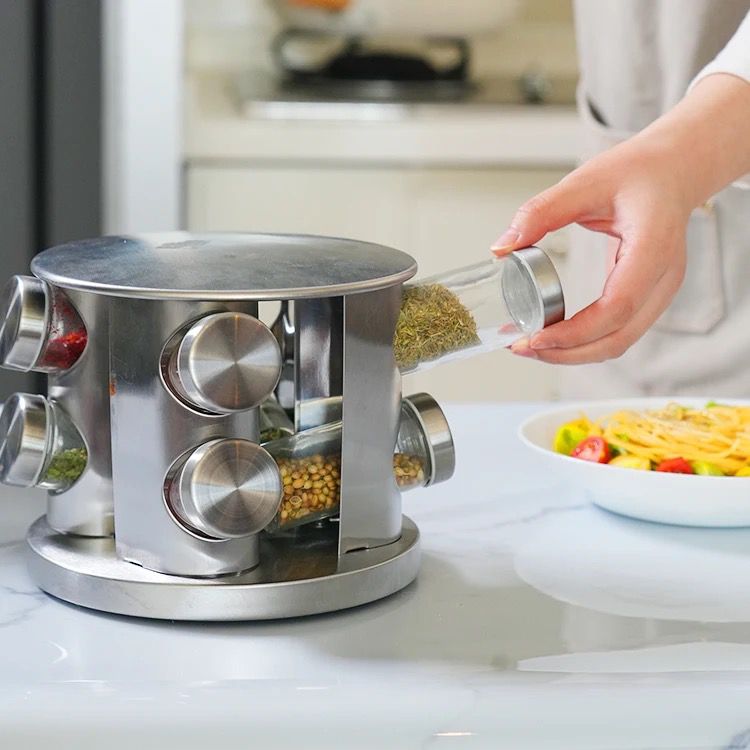 Este Especiero Giratorio Condimentero Acero Inoxidable Frasco X8 Color Plateado es un producto de la marca FR, reconocida por su calidad y diseño. Este especiero, modelo C5168, es una pieza esencial en cualquier cocina moderna. Fabricado en acero inoxidable de alta calidad, este especiero es resistente y duradero. Su color plateado le da un toque elegante y sofisticado, perfecto para cualquier decoración de cocina. El especiero tiene un diseño giratorio, lo que permite un fácil acceso a las especias y condimentos. Viene con 8 frascos de vidrio con tapa de acero, cada uno de 9 cm x 4 cm, ideales para almacenar una variedad de especias. Las dimensiones del especiero son 15 cm x 19 cm x 19 cm, lo que lo hace compacto y fácil de ubicar en cualquier espacio de la cocina. A pesar de su tamaño compacto, tiene una capacidad para albergar hasta 8 frascos de especias.