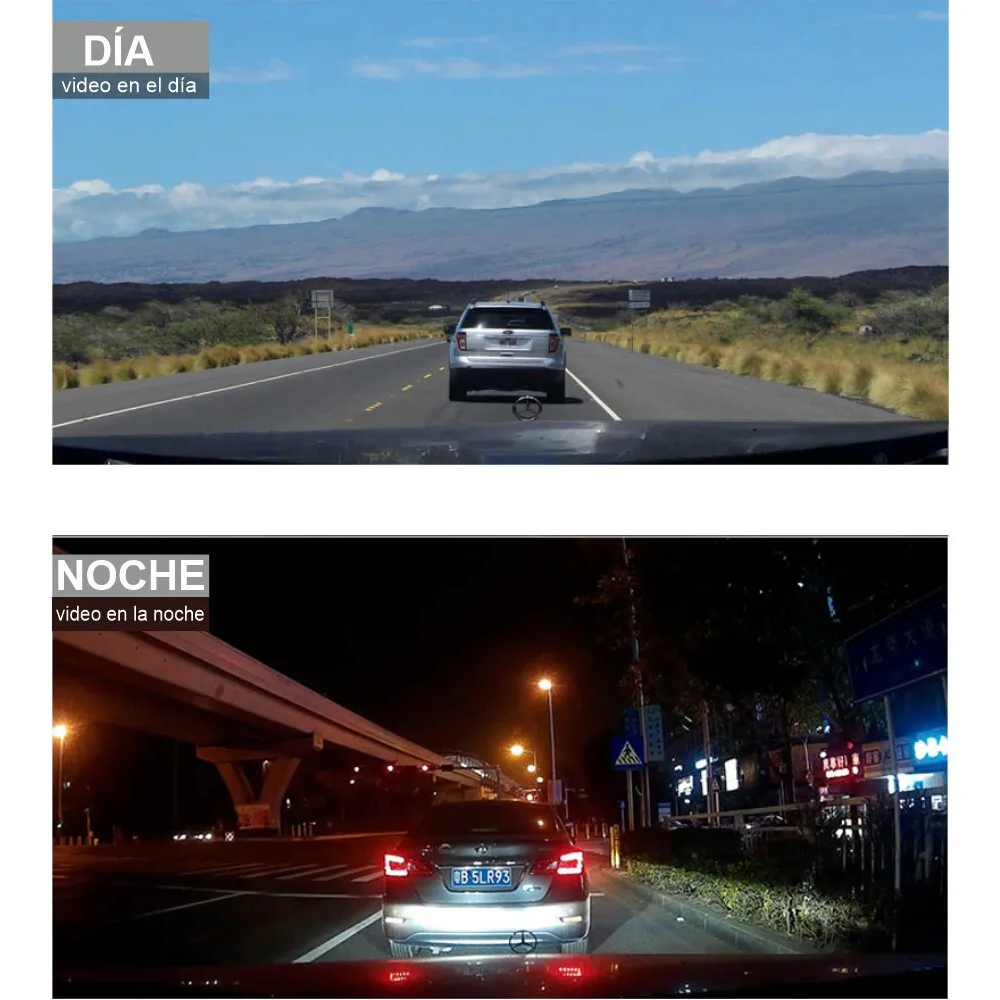 Sensor G, grabación en bucle y monitor de aparcamiento: el vídeo se puede grabar en intervalos de 1, 2 o 3 minutos. Cuando se alcanza el límite de almacenamiento en la tarjeta de memoria, nuestra grabación en bucle sobrescribe automáticamente las grabaciones más antiguas desbloqueadas. El sensor de gravedad detecta el impacto durante la conducción y bloquea el vídeo en caso de conflictos. Con la función de monitor de aparcamiento, la cámara se encenderá automáticamente y grabará un vídeo de 20 segundos cuando la cámara del coche detecta vibración 24/7, incluso si el coche está aparcado.