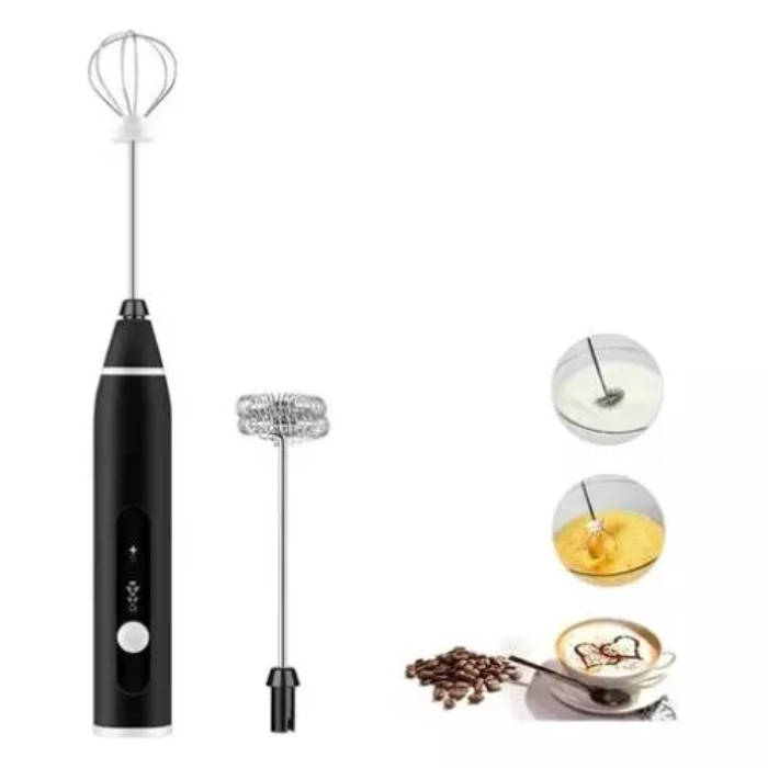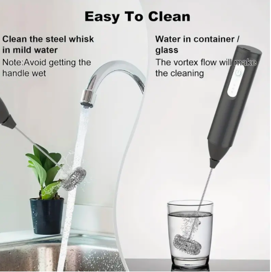 – Ajustes de velocidad: nuestra varilla de espuma tiene tres velocidades que, respectivamente, satisfacen sus necesidades en diversas situaciones (8000, 10 000 y 12 000 rpm). @@– Fácil de usar y limpiar. Presione un botón, seleccione la velocidad de rotación que necesita y comience a espumar. Después del uso, sumerja la máquina de espuma portátil en agua para limpiarla rápidamente. @@- Espumador de leche multifuncional: Incluimos un cabezal de resorte y 1 cabezal batidor con nuestro espumador de leche. El batidor de café es reemplazable y se puede utilizar para diversos fines. @@- Espumador de leche recargable por USB: una batería integrada de 1200 mAh alimenta este fabricante de espuma. Alimentado por USB y mantiene una carga durante mucho tiempo. @@Café, frappé, lattes, capuchinos y bebidas de chocolate caliente van muy bien con la espuma. También puedes batir huevos y nata.