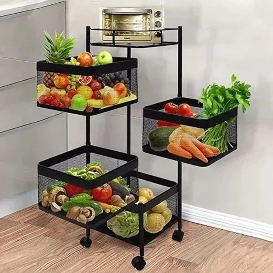 Estante de almacenamiento cuadrado giratorio de 4 niveles, estante de almacenamiento de metal para aperitivos de frutas y verduras, cesta de pie para cocina, dormitorio, baño, sala de estar
