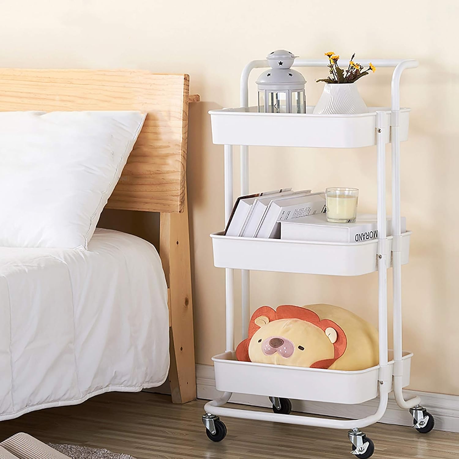 - Multifunción: El carrito de almacenamiento no sólo se puede utilizar en la cocina para almacenar verduras, frutas, especias y vajilla, sino que también se puede utilizar en la sala de estar para almacenar aperitivos, libros y artículos diversos. También se puede colocar en el cuarto de baño para almacenar toallas, gel de ducha, cosméticos y artículos de tocador