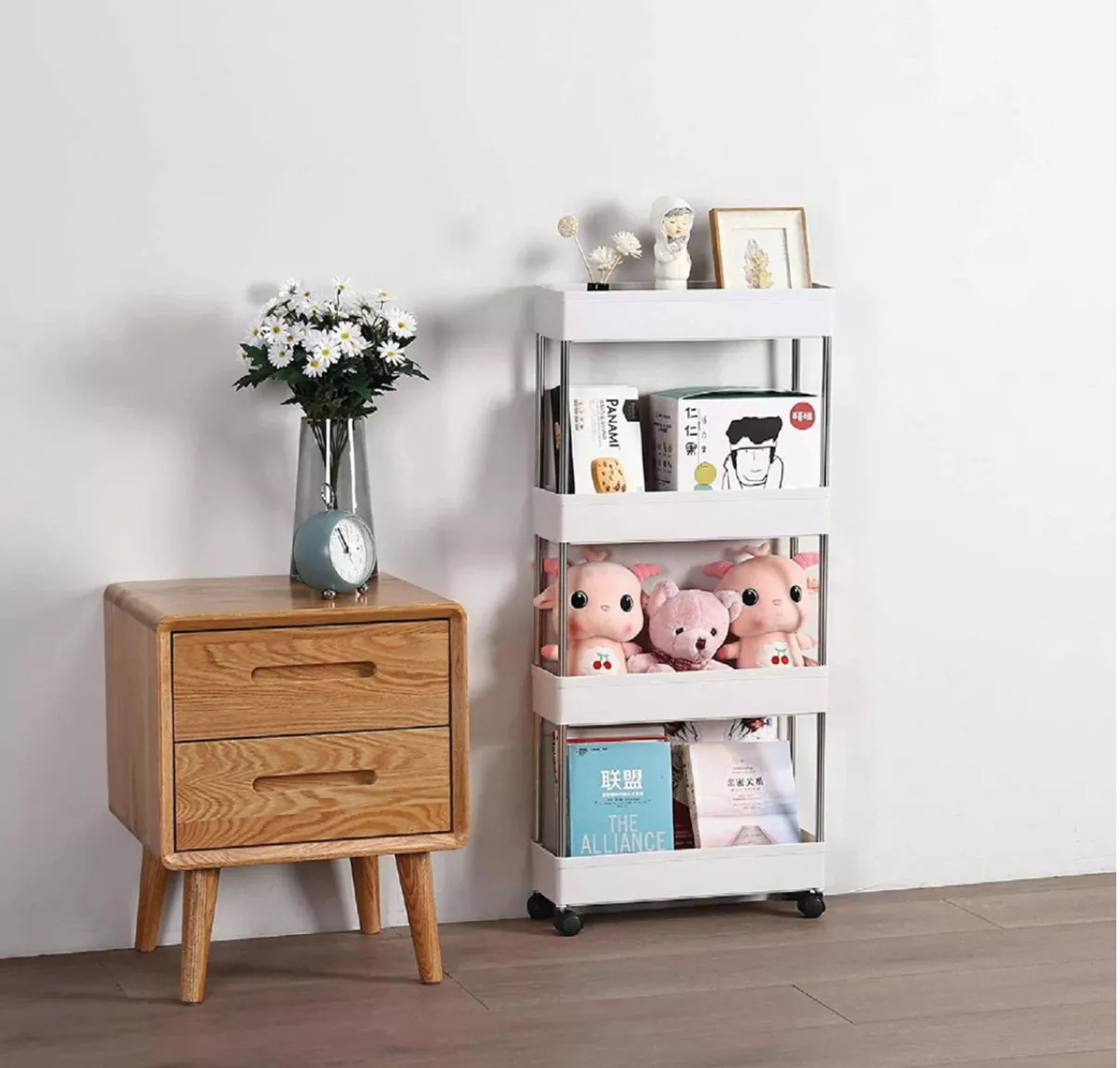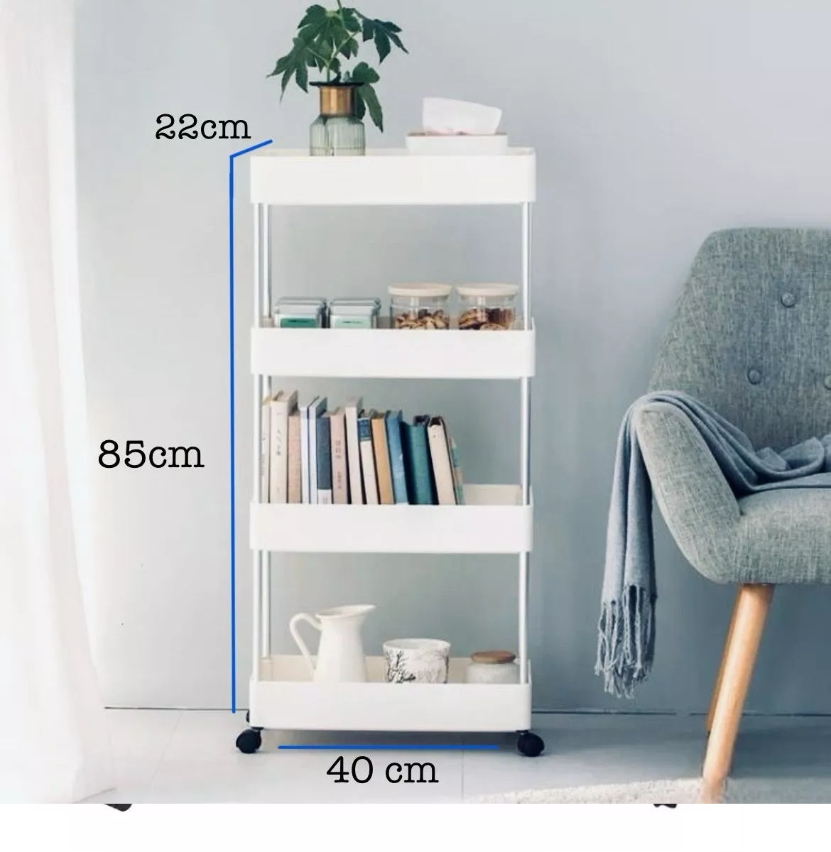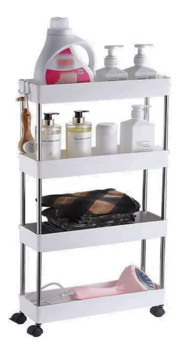 Estante tipo carrito multiusos de 4 niveles con ruedas color blanco WL Center