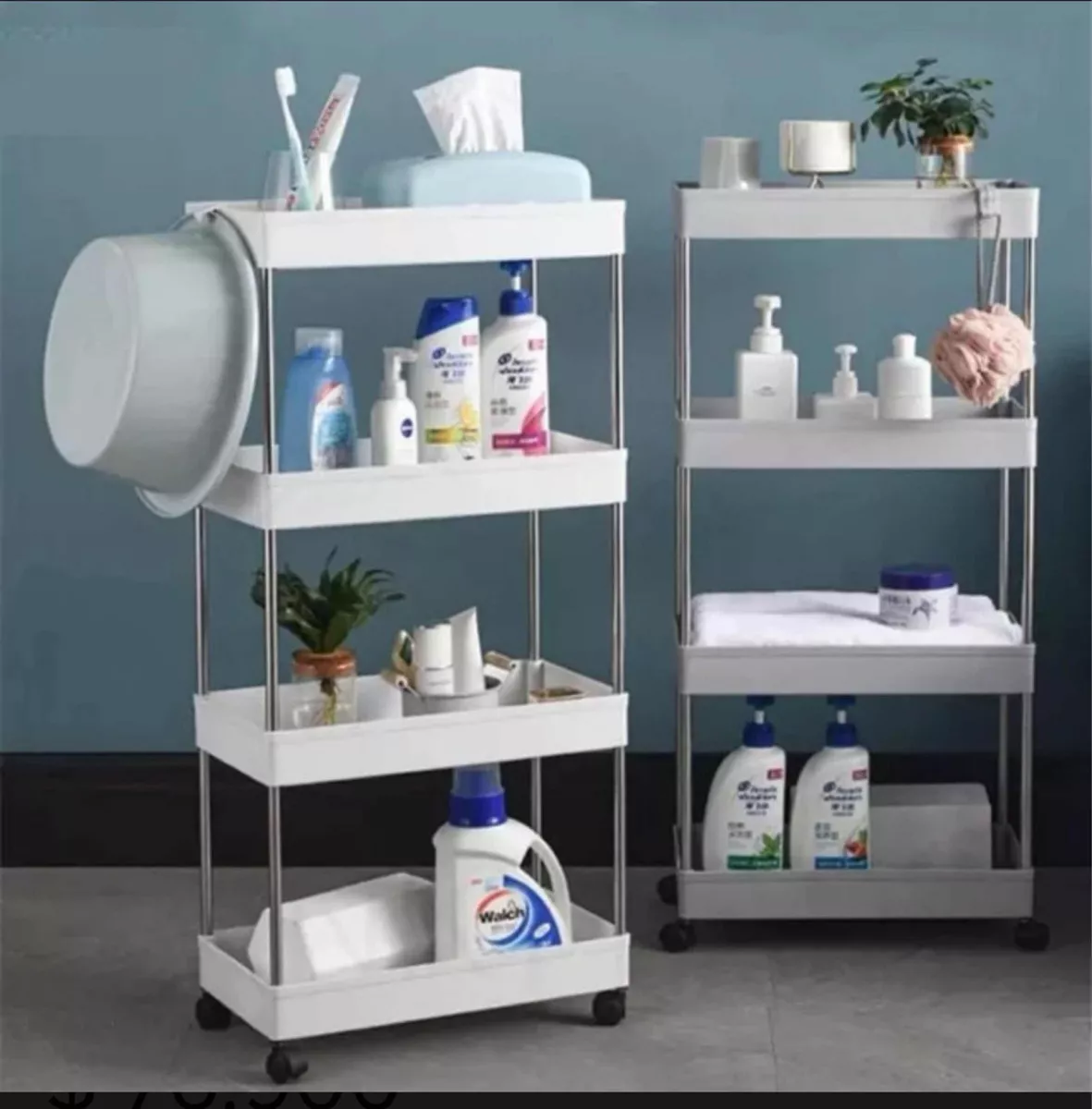 Organízate con comodidad utilizando el estante tipo cesta Trolley de 4 niveles con ruedas en color blanco. Con un diseño que brinda más organización y belleza a sus espacios, este artículo es ideal para usar en cocinas, baños, lavanderías, oficinas y otros entornos, según sea necesario.