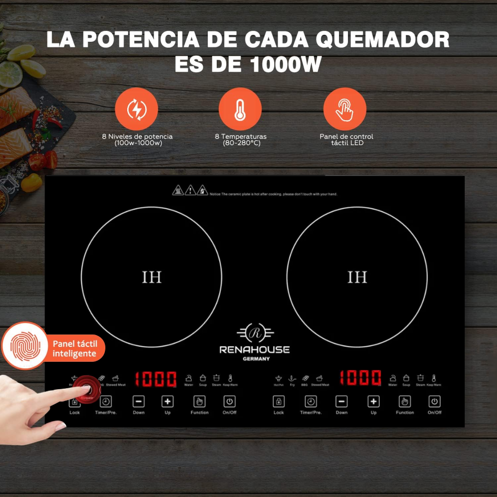 Potencia: 2000W (1000w cada quemador)
