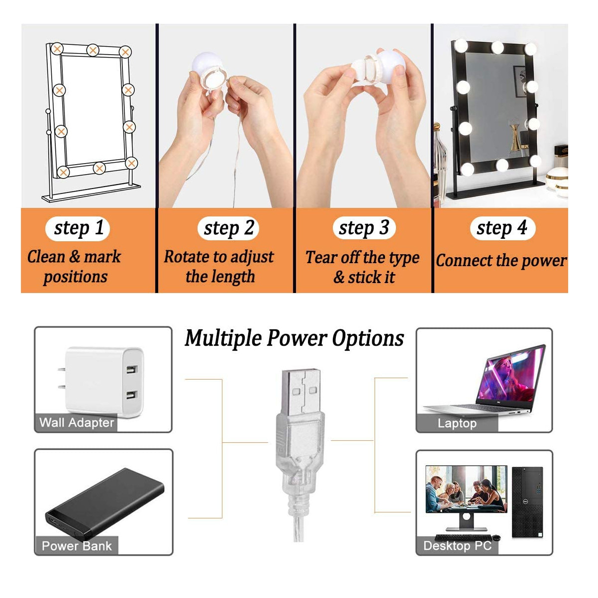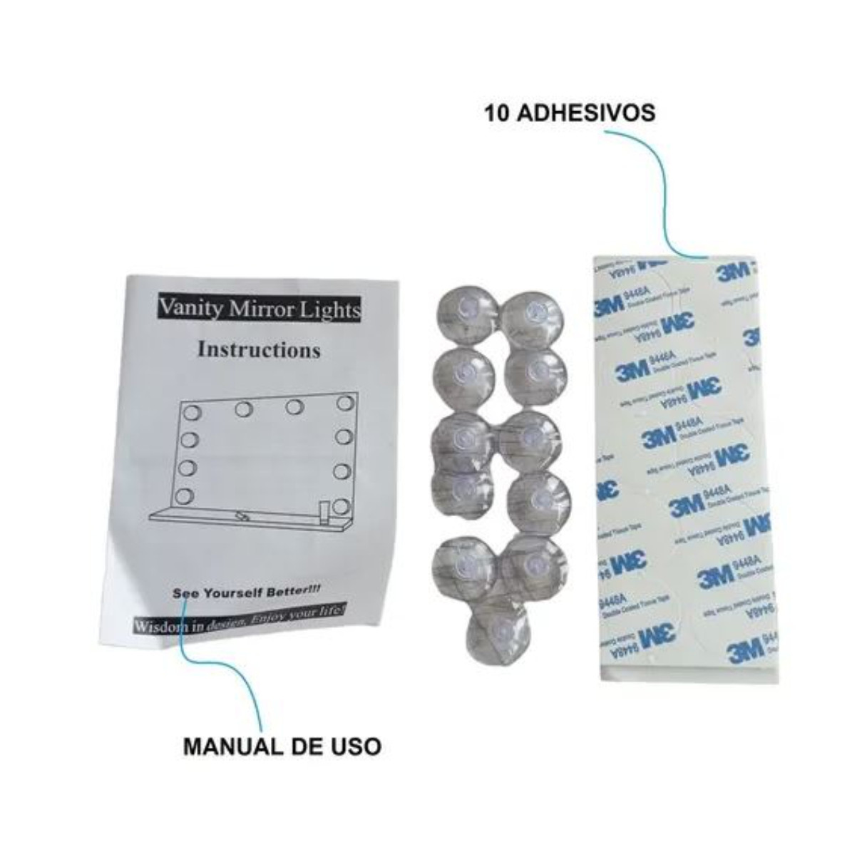 10 luces brillantes y suaves para espejo: paga menos dinero para hacer de tu espejo un espejo de estilo Hollywood. También es una maravillosa decoración, produce una sensación de lujo para tu tocador o espejo. Las bombillas LED generan menos calor. La luz es brillante pero no deslumbrante, incluso si se utiliza durante mucho tiempo, no causará daños a tus ojos.