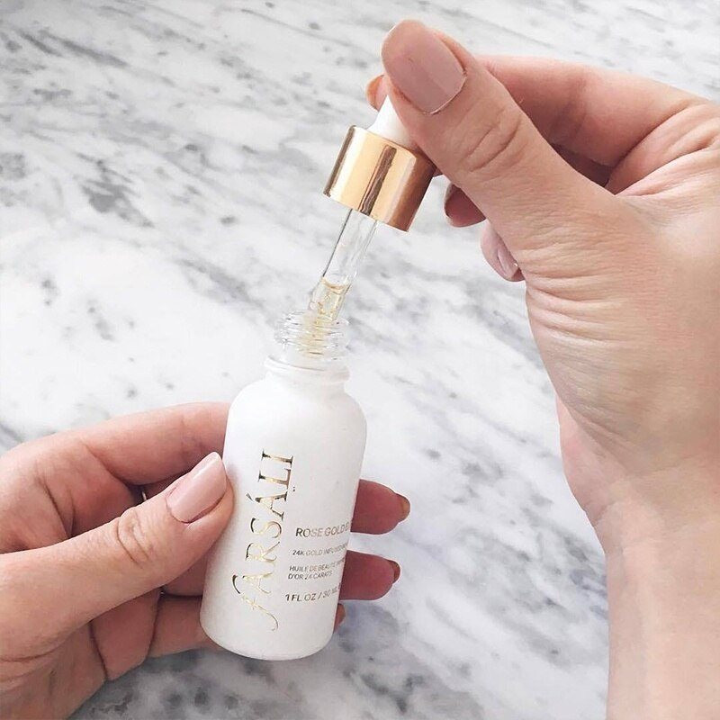 Ingredientes: agua, citronela, naranja, vitamina e, glicerol, ácido hialurónico, propilenglicol, fragancia, aceite de semilla de calabaza, oro de 24K.